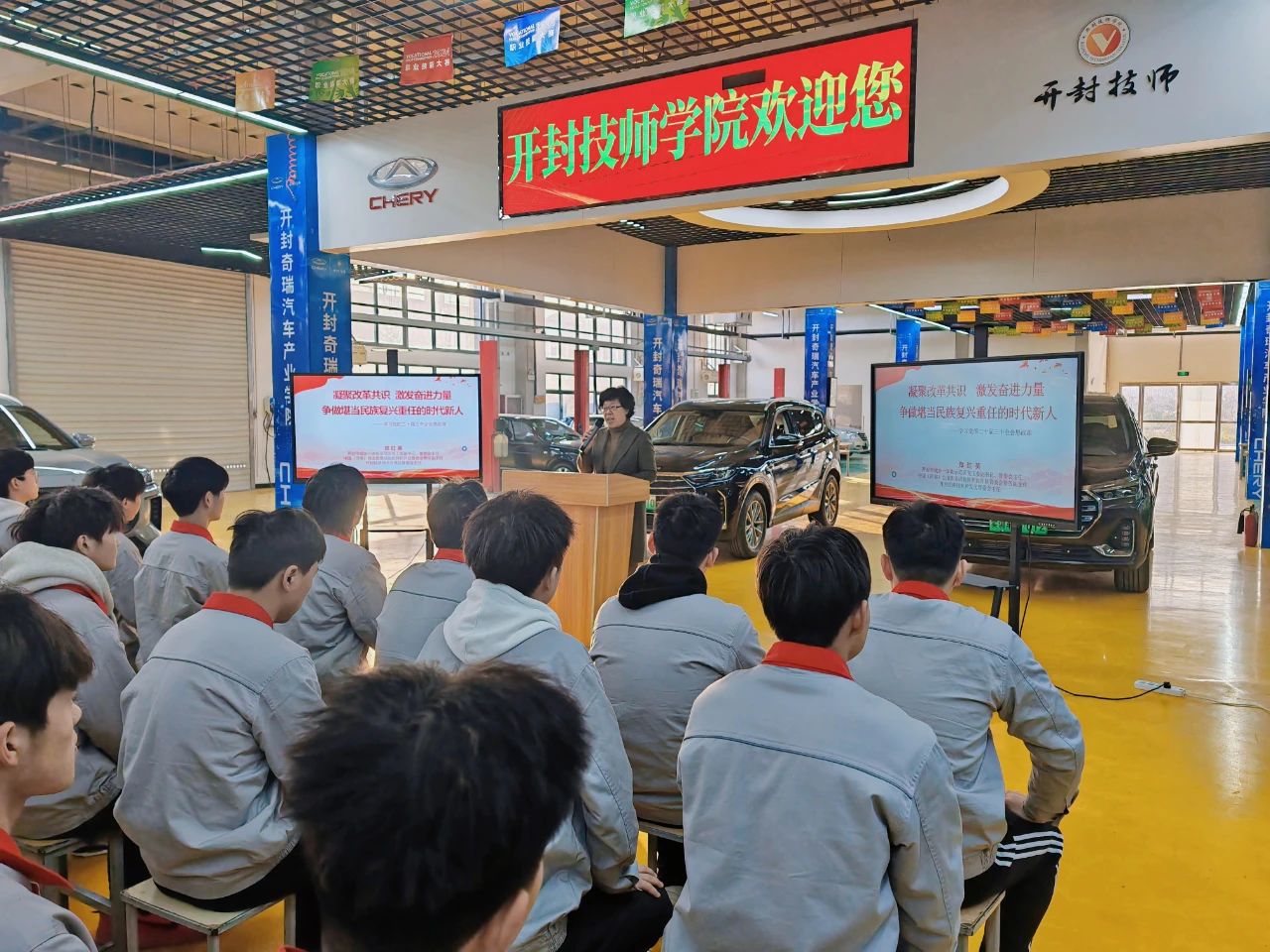 12月25日上午,示范区管委会主任、自贸试验区开封片区管委会常务副主任、开封经开区管委会主任郑红英到开封市技师学院,围绕深入学习贯彻党的二十届三中全会精神,为开封奇瑞汽车产业学院学生讲授思政课。