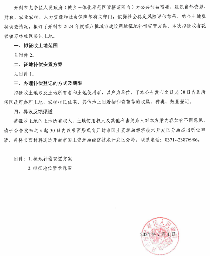 汴龙土补偿公告【2024】第11号