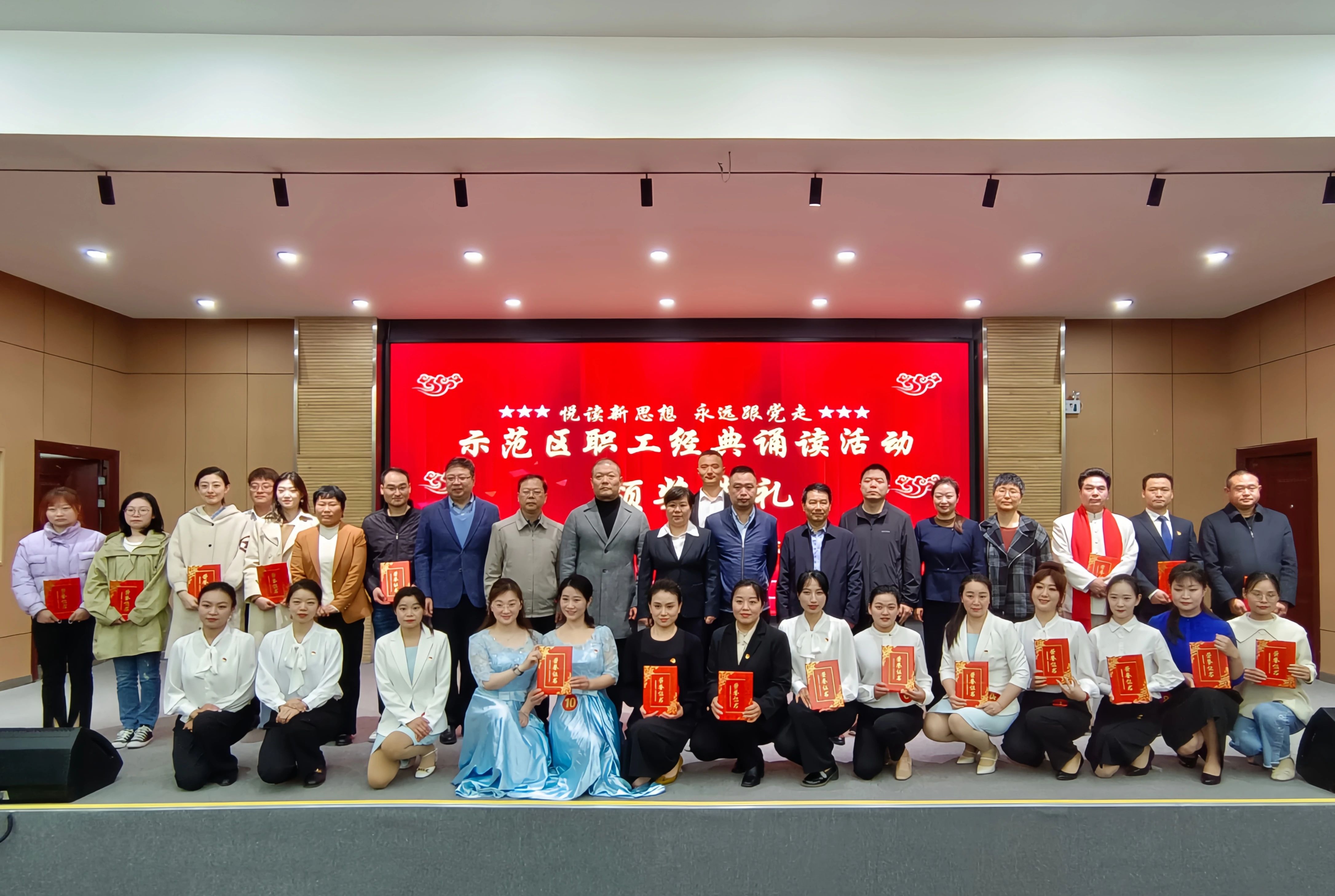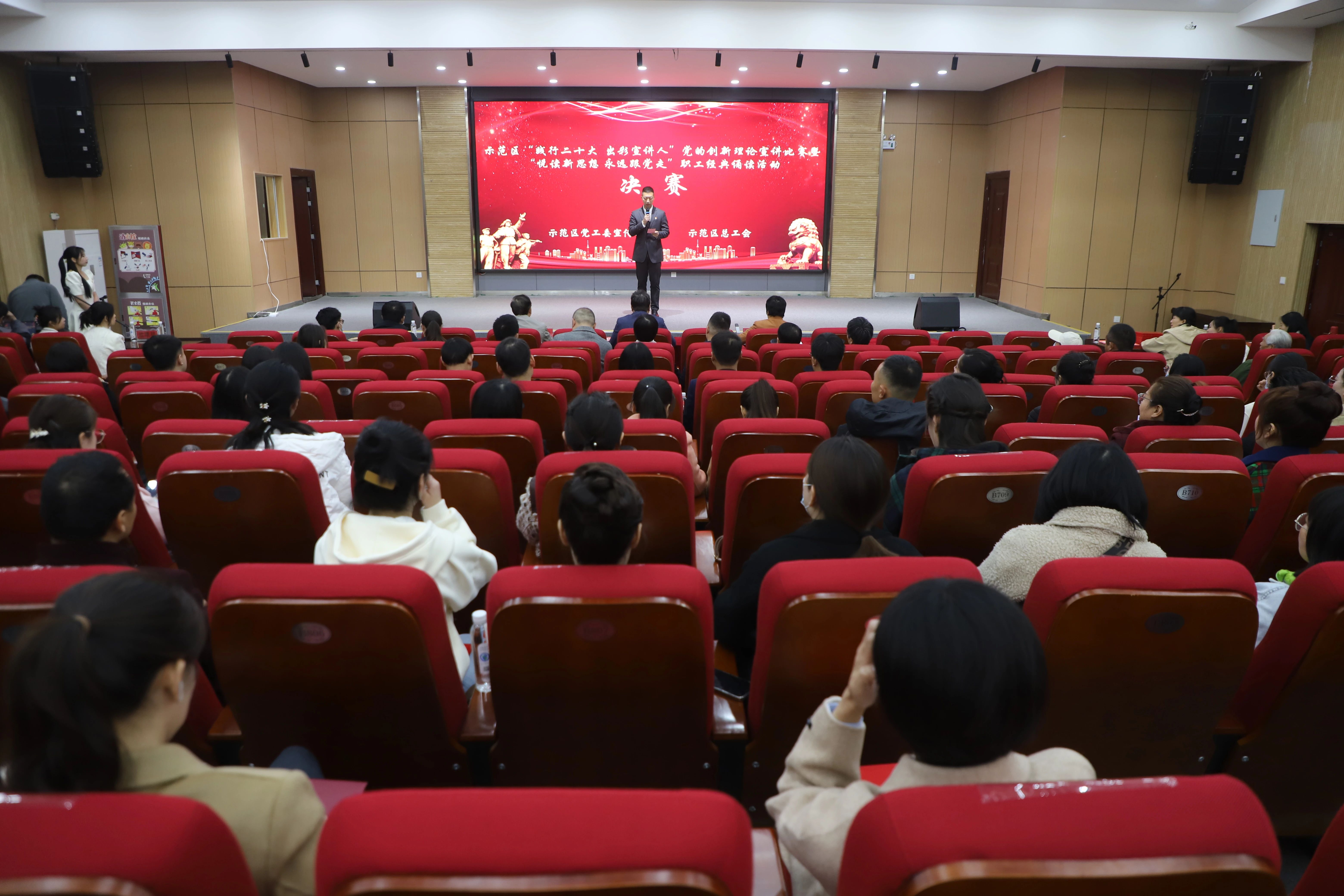 春天的暖意,蕴含盎然生机;使命的召唤,催发蓬勃朝气。为深入学习贯彻习近平新时代中国特色社会主义思想和党的二十大精神,认真落实中央、省委关于推进全民阅读、建设书香河南的重要决策部署,不断丰富职工群众文化生活,4月25日,由示范区党工委宣传部、示范区总工会联合举办的示范区“践行二十大 出彩宣讲人”党的创新理论宣讲比赛暨“悦读新思想 永远跟党走”职工经典诵读活动决赛在郑开同城示范区小学举行。