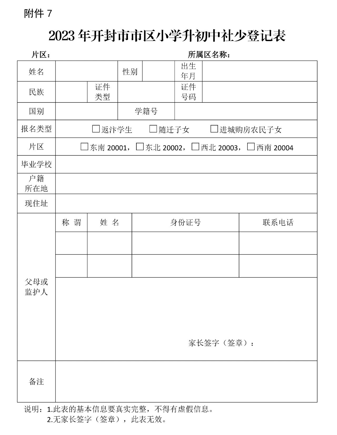 7.2023年开封市市区小学升初中社少登记表