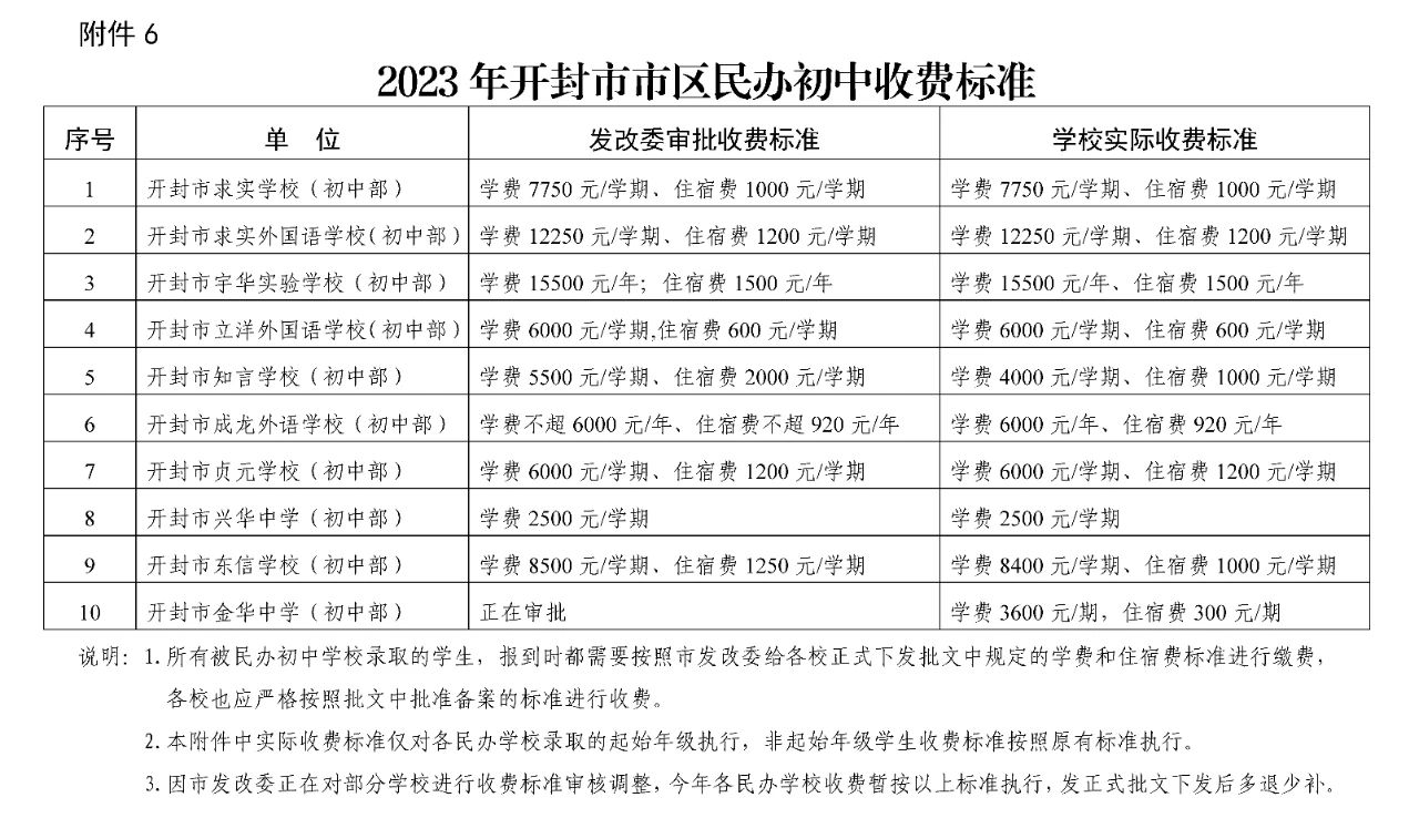 6.2023年开封市市区民办初中收费标准(暂行)