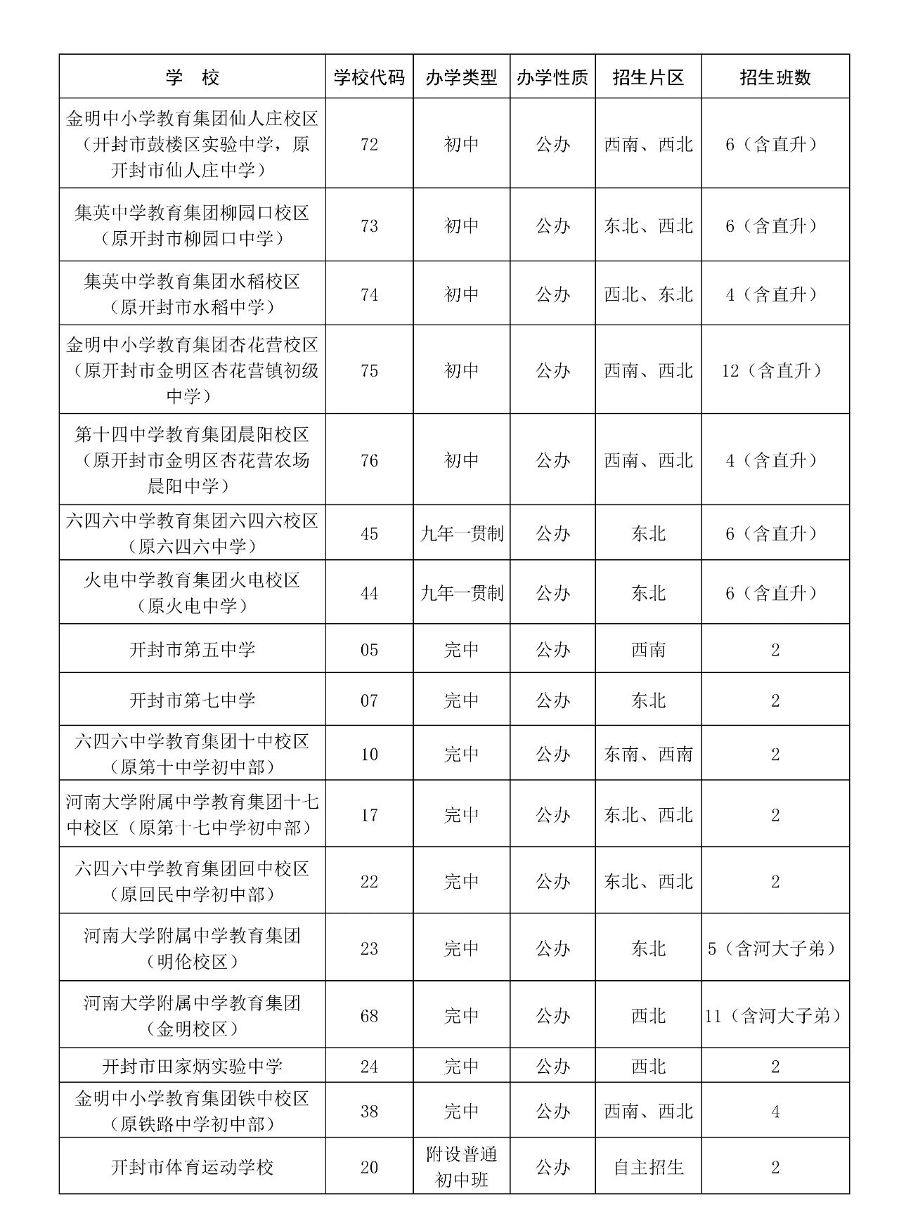 2.2023年开封市市区初中招生学校招生计划