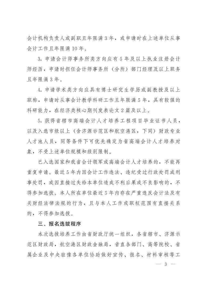 河南省财政厅关于开展河南省高端会计人才培养工程(第三期)选拔培养工作的通知
