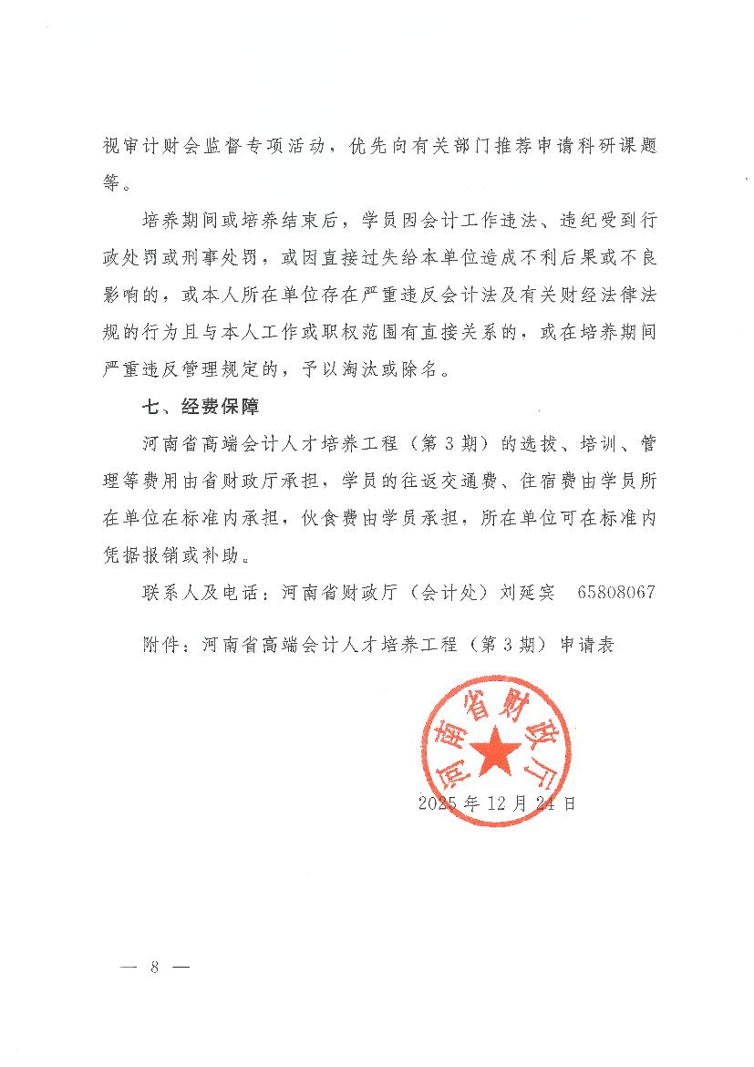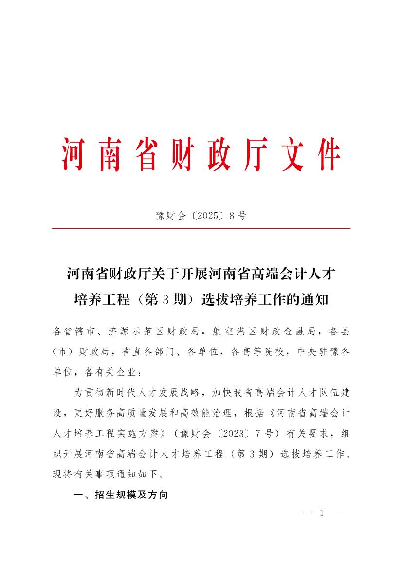 豫财会(2025)8号——河南省财政厅关于开展河南省高端会计人才培养工程(第三期)选拔培养工作的通知
