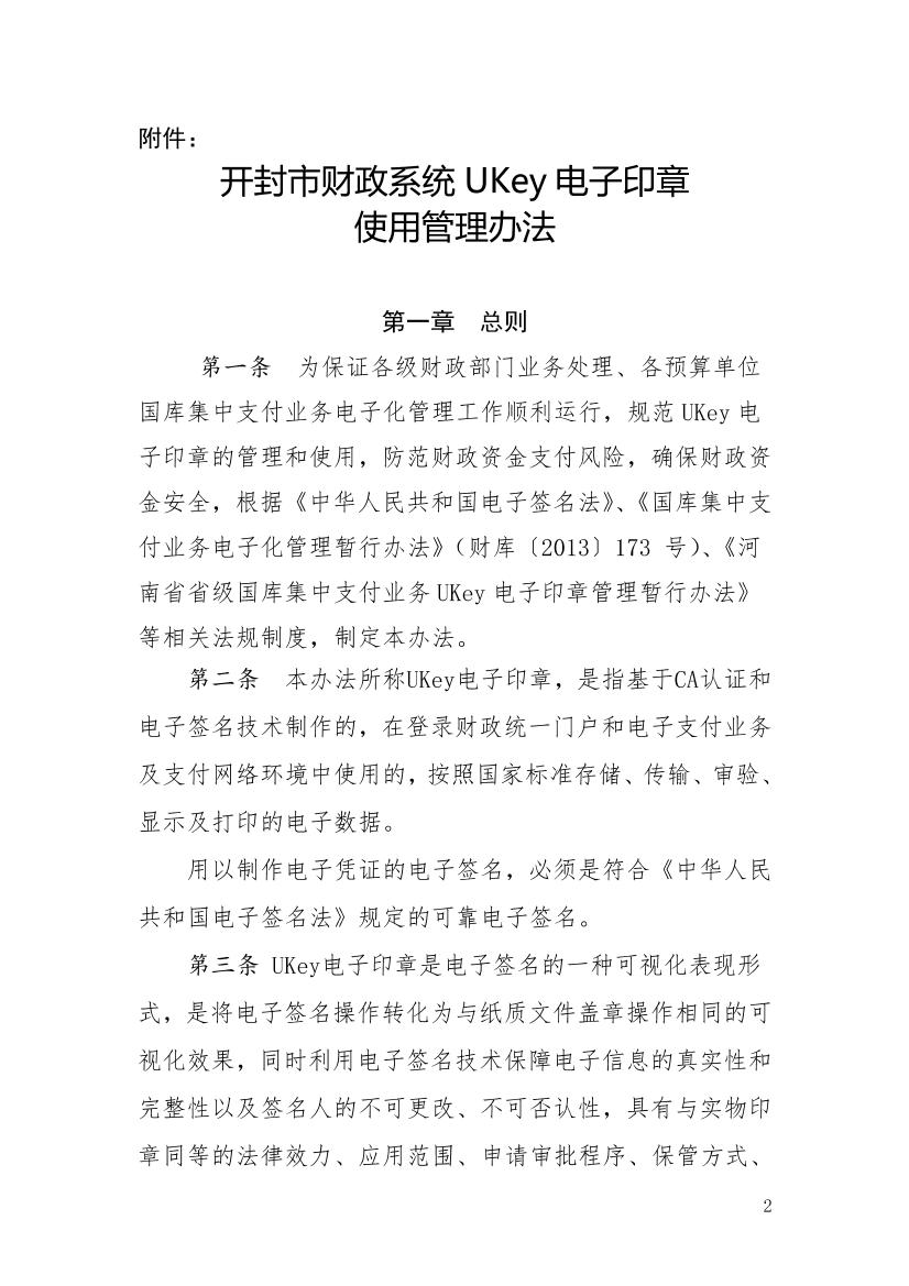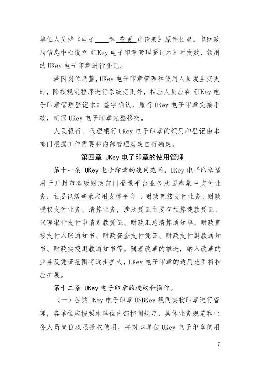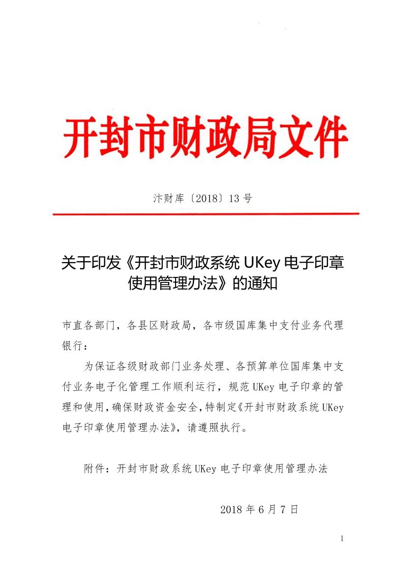 开封市财政局关于印发《开封市财政系统UKey电子印章使用管理办法》的通知