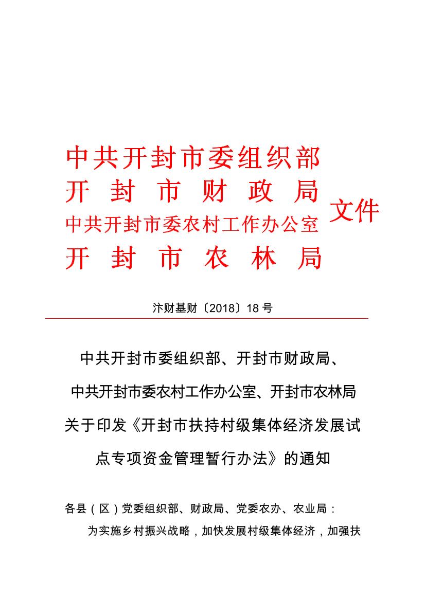 中共开封市委组织部、开封市财政局、中共开封市委农村工作办公室、开封市农林局关于印发开封市扶持村级集体经济发展试点专项资金管理办法