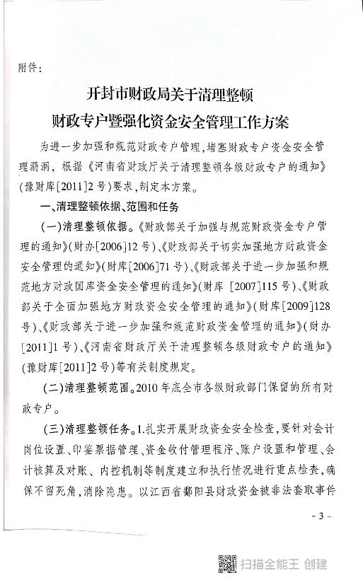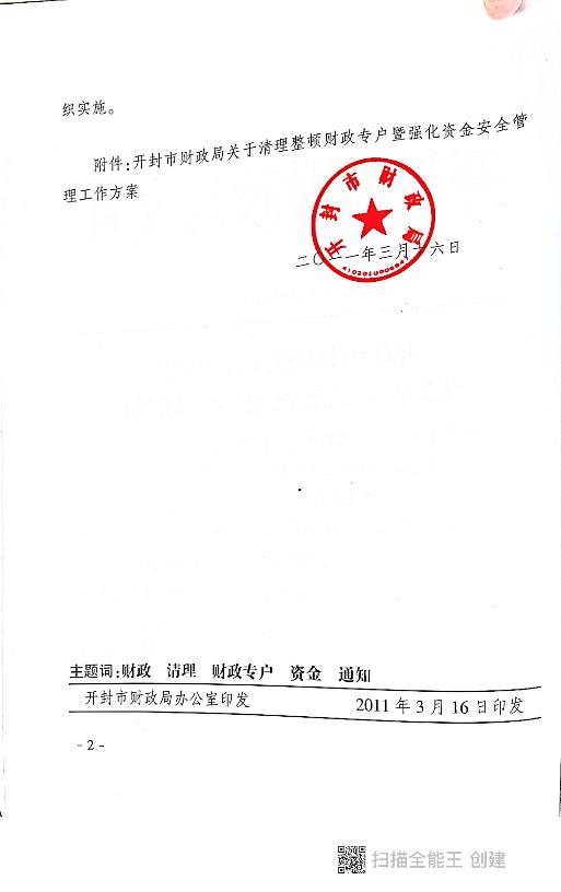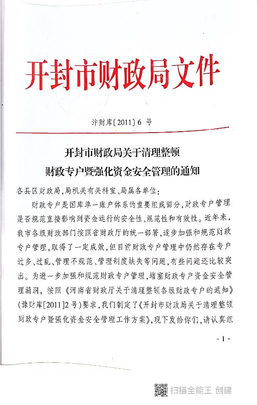 开封市财政局关于清理整顿财政专户强化资金安全管理的通知