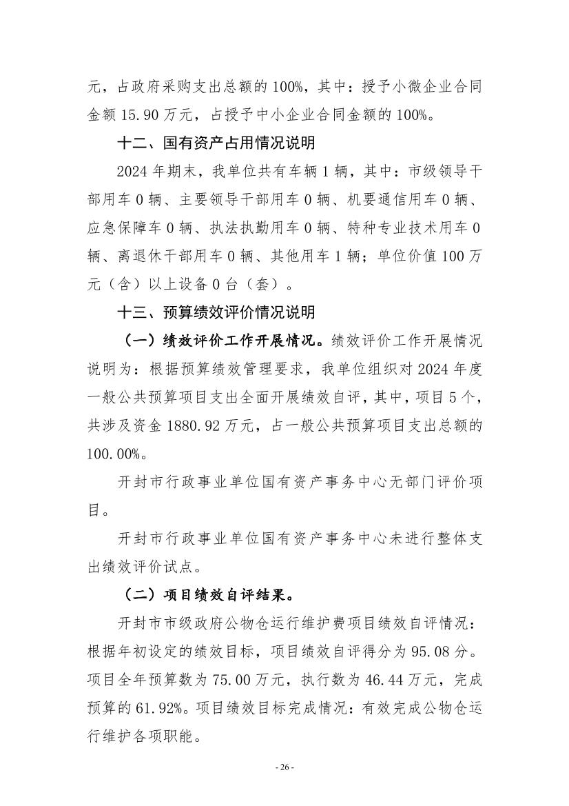 2024年度开封市行政事业单位国有资产事务中心决算公开说明