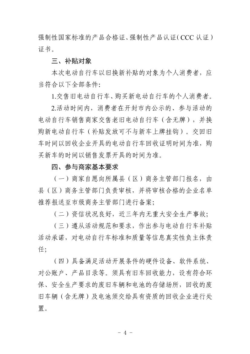 开封市商务局等8部门关于印发《开封市2025年电动自行车以旧换新补贴实施细则》的通知