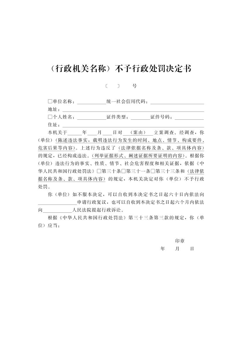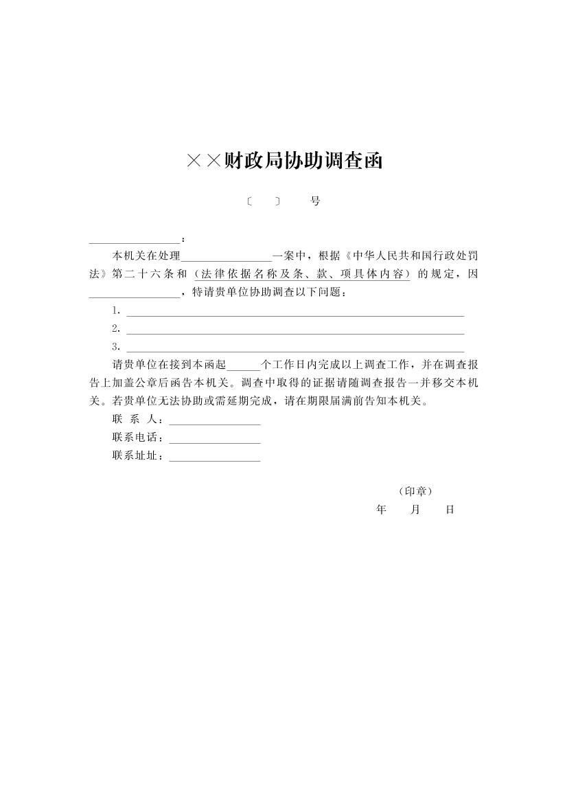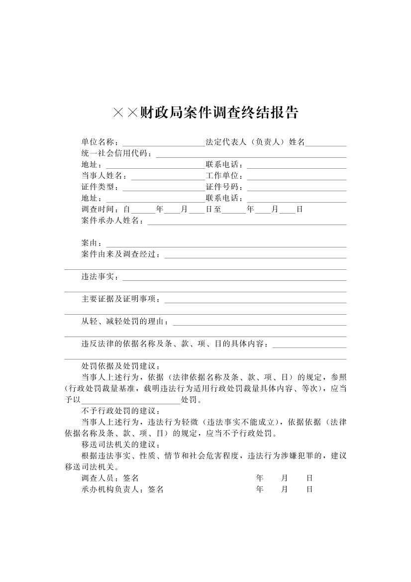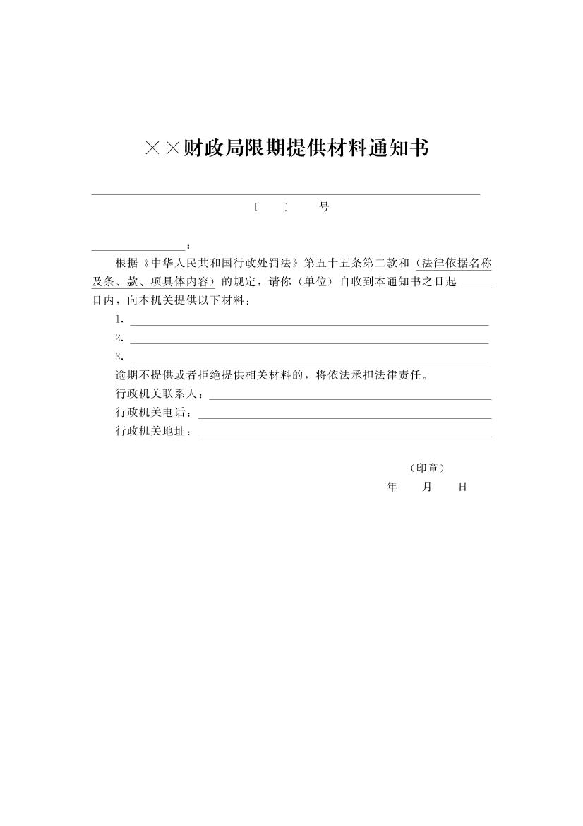 开封市财政系统行政执法文书