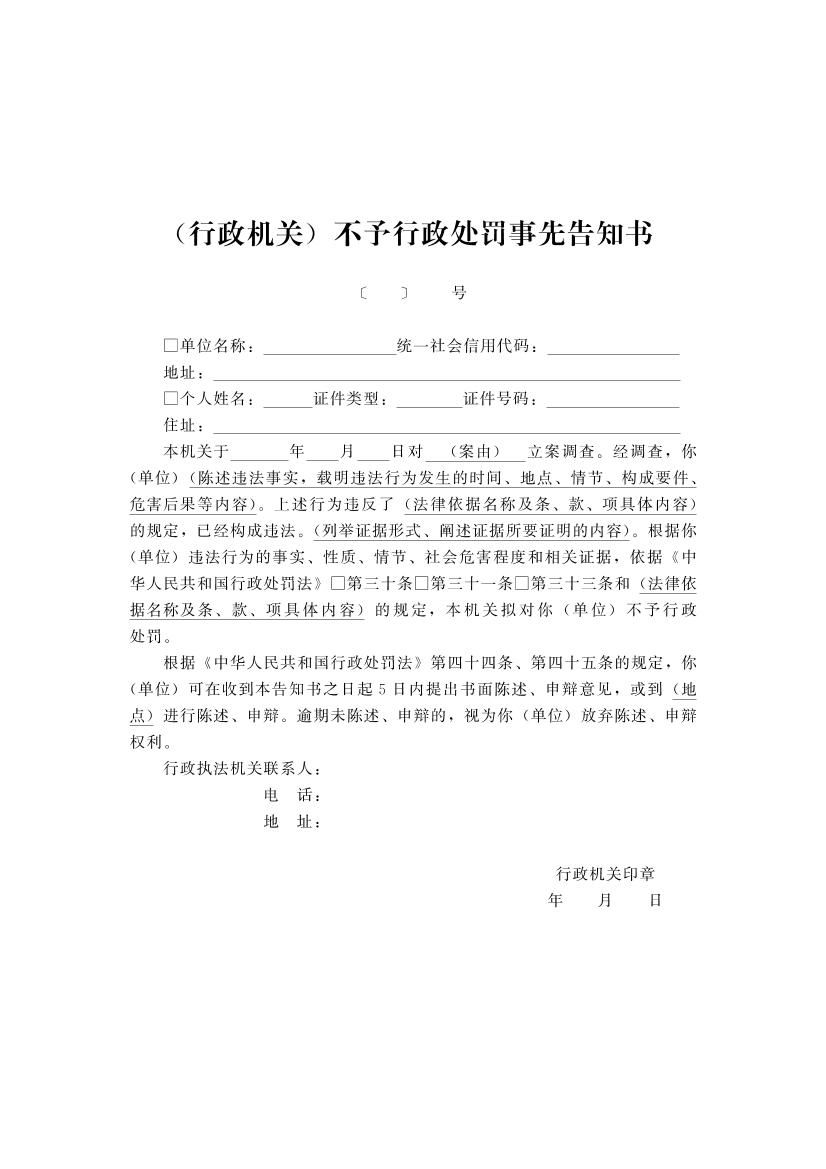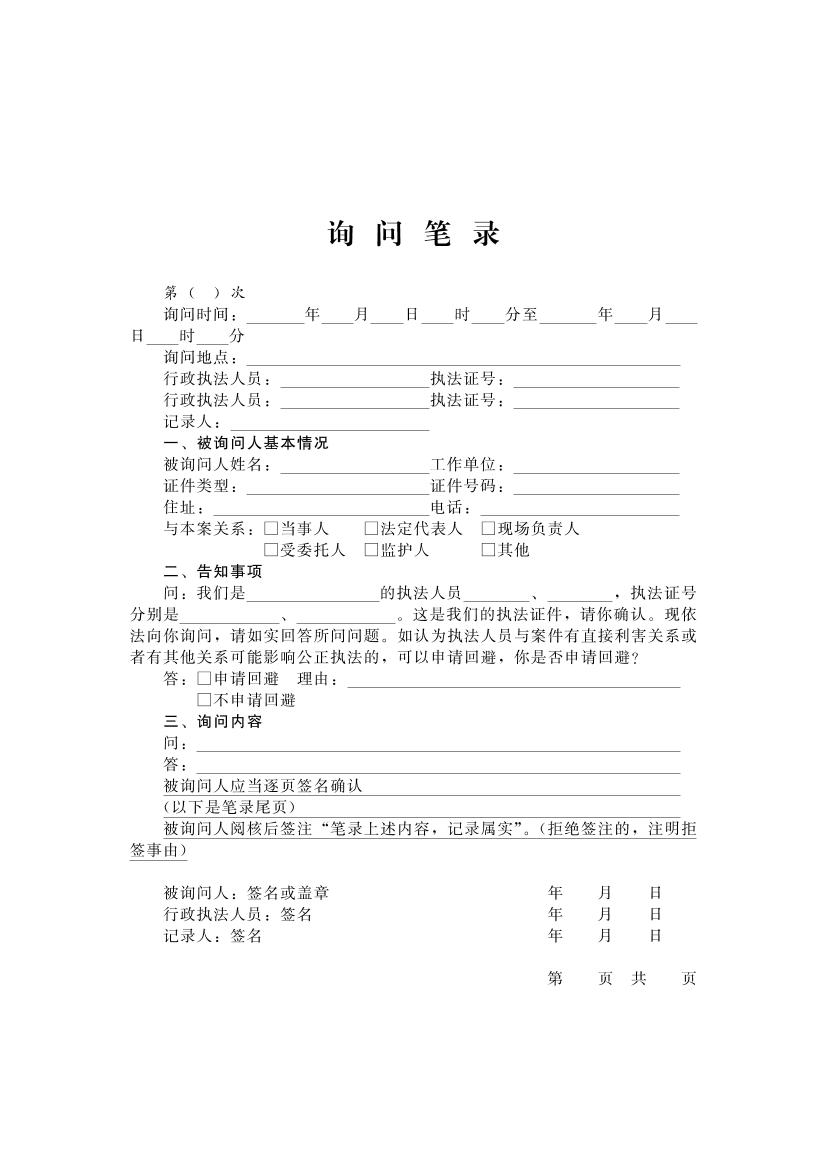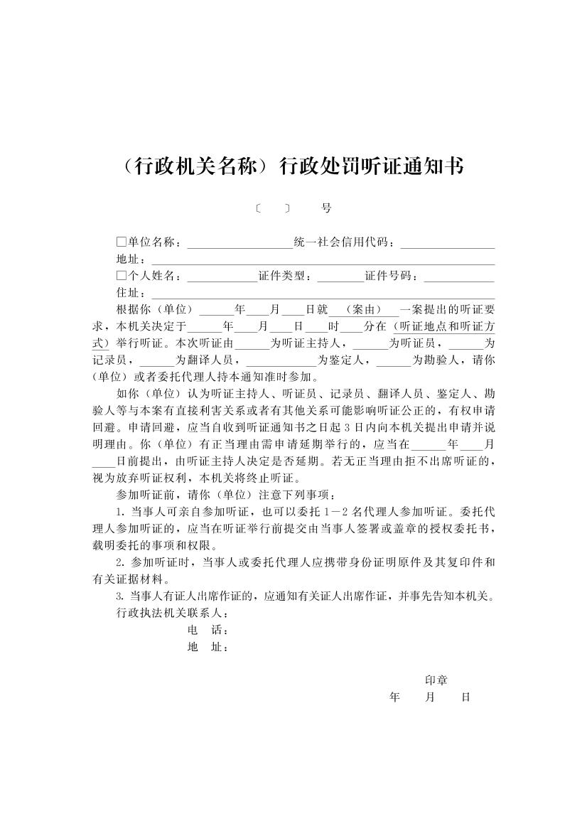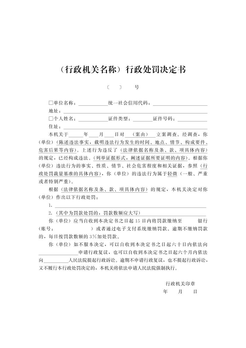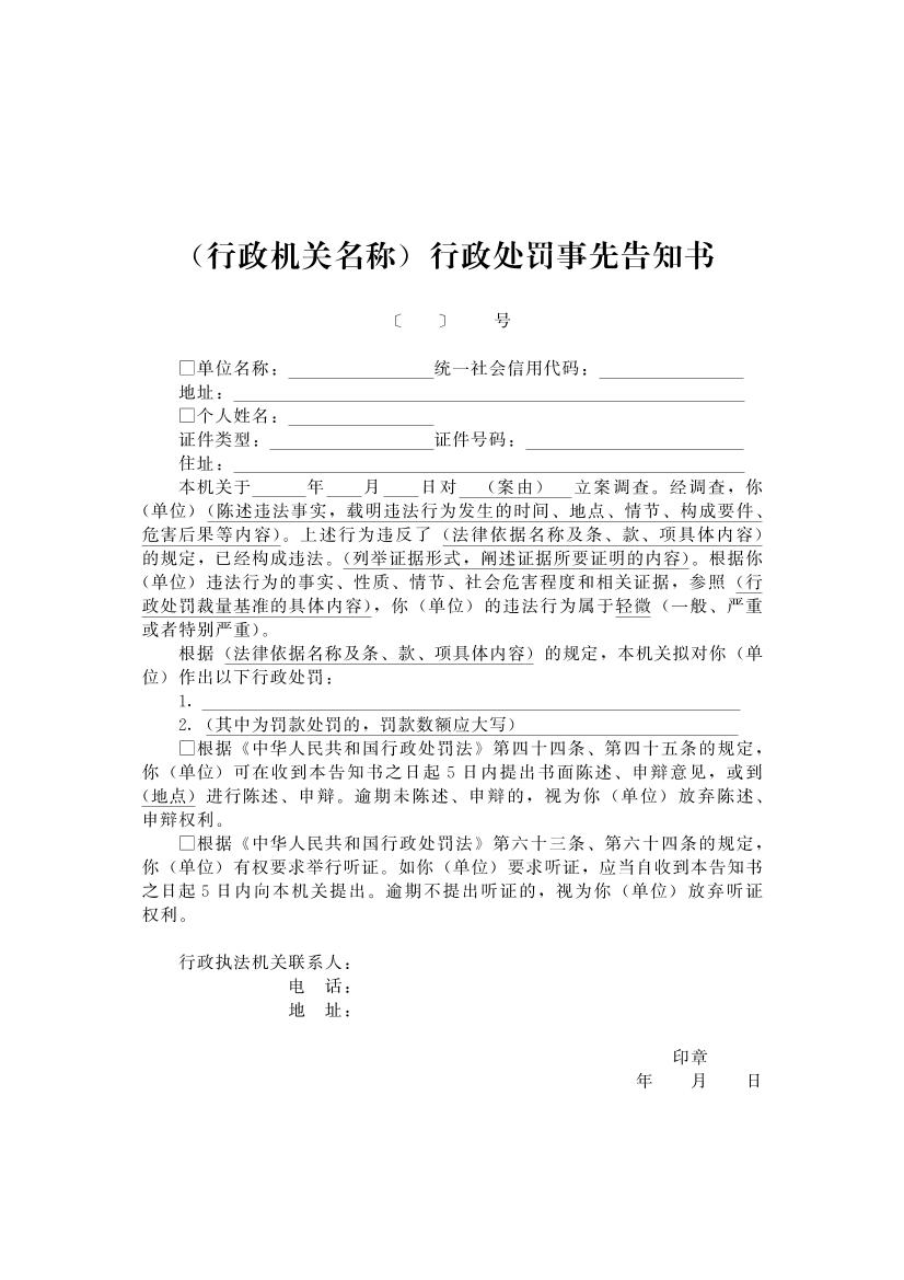开封市财政系统行政执法文书