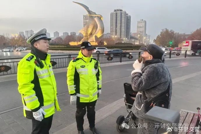随后民警在和老人的交流中得知,老人家住在顺河区,下午驾驶电动轮椅外出,结果迷路导致越走越远,直到行驶至金明广场电动轮椅电量耗尽。正当老人一筹莫展之际,看到了正在路口执勤的民警,于是便有了开头的一幕。
