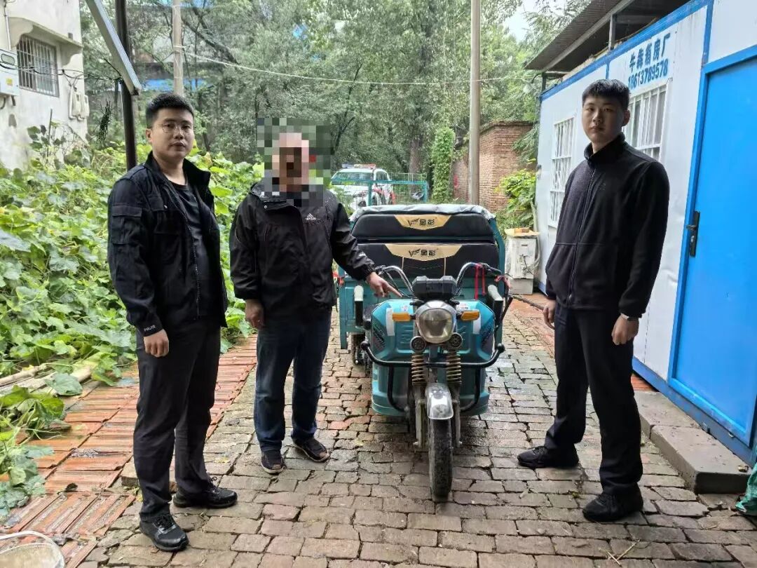 9月21日,龙亭公安分局大兴派出所接到群众报警,称停放在景区附近的电动三轮车不见了。民警孙振、赵珂、刘烨立即展开侦查,通过调取周边监控和走访摸排,最终锁定一名身着黑色外套、牛仔裤的男子有重大嫌疑。在刑侦大队支持下,民警成功将违法行为人刘某抓获,追回被盗电动三轮车。目前,刘某已被依法拘留。