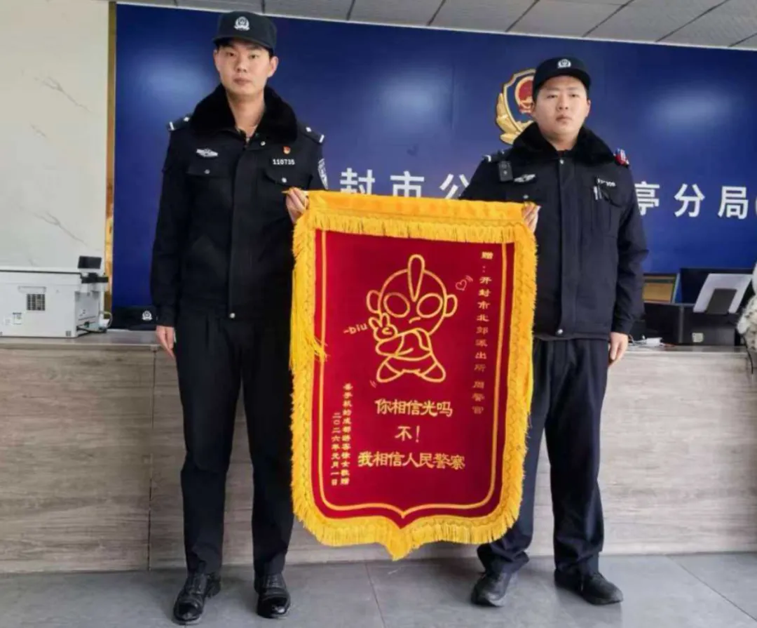 成都游客徐女士在万岁山景区丢失手机后,北郊派出所民警周玉开连夜查看监控锁定特征。1月1日凌晨3点,他根据手机定位找到辖区某民宿,面对捡拾者最初的否认,他耐心沟通、细致工作,最终让手机平安回到徐女士手中。“开封公安是为人民保驾护航的守护者!”徐女士的锦旗上那句“我相信人民警察”,是对这份执着最好的回应。