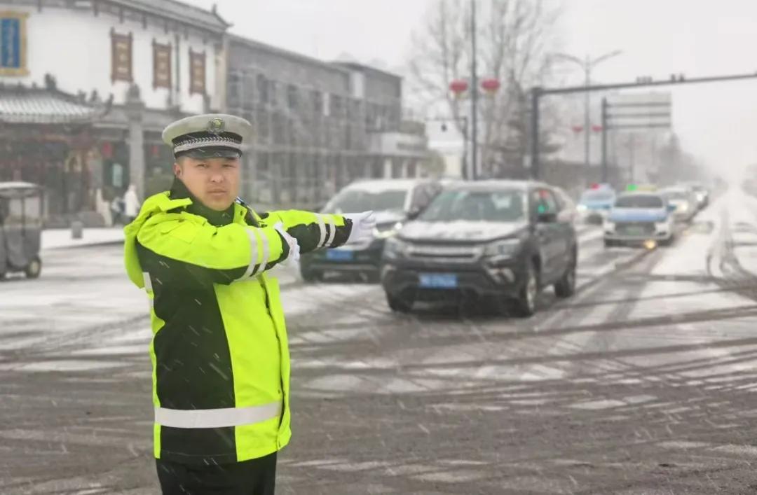 在风雪中为每一辆车指引方向。