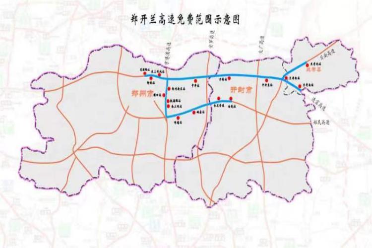 注意:若从其他区域站点上高速“一站直达”是不免费的。要想最大化享受高速免费政策红利,需下站后再次在郑开兰高速免费体系内免费站点上站,行驶指定免费路段,再在高速免费体系内免费站点下站。也就是说同时满足下列条件,方可免区间通行费:1、安装ETC设备的小型客车;2、通行免费路段;3、免费站点上下站;4、在相应区间内。