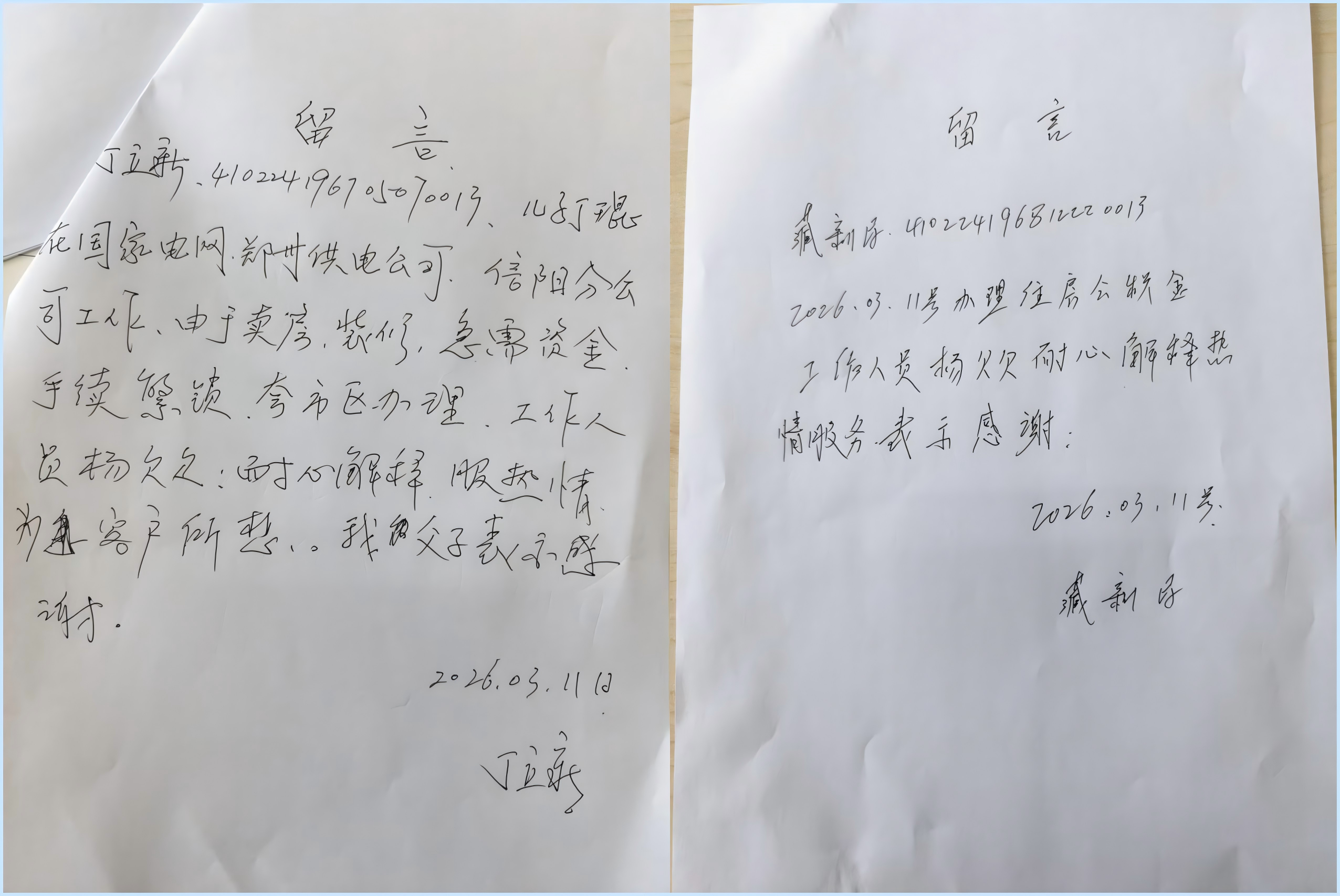 “咱公积金窗口服务态度是真好,用跨省通办帮我解决了大难题!”。3月11日,丁先生把手写的“工作人员耐心解释、服务热情,真心为客户着想,我父子表示感谢”感谢信送到祥符区管理部服务窗口。
