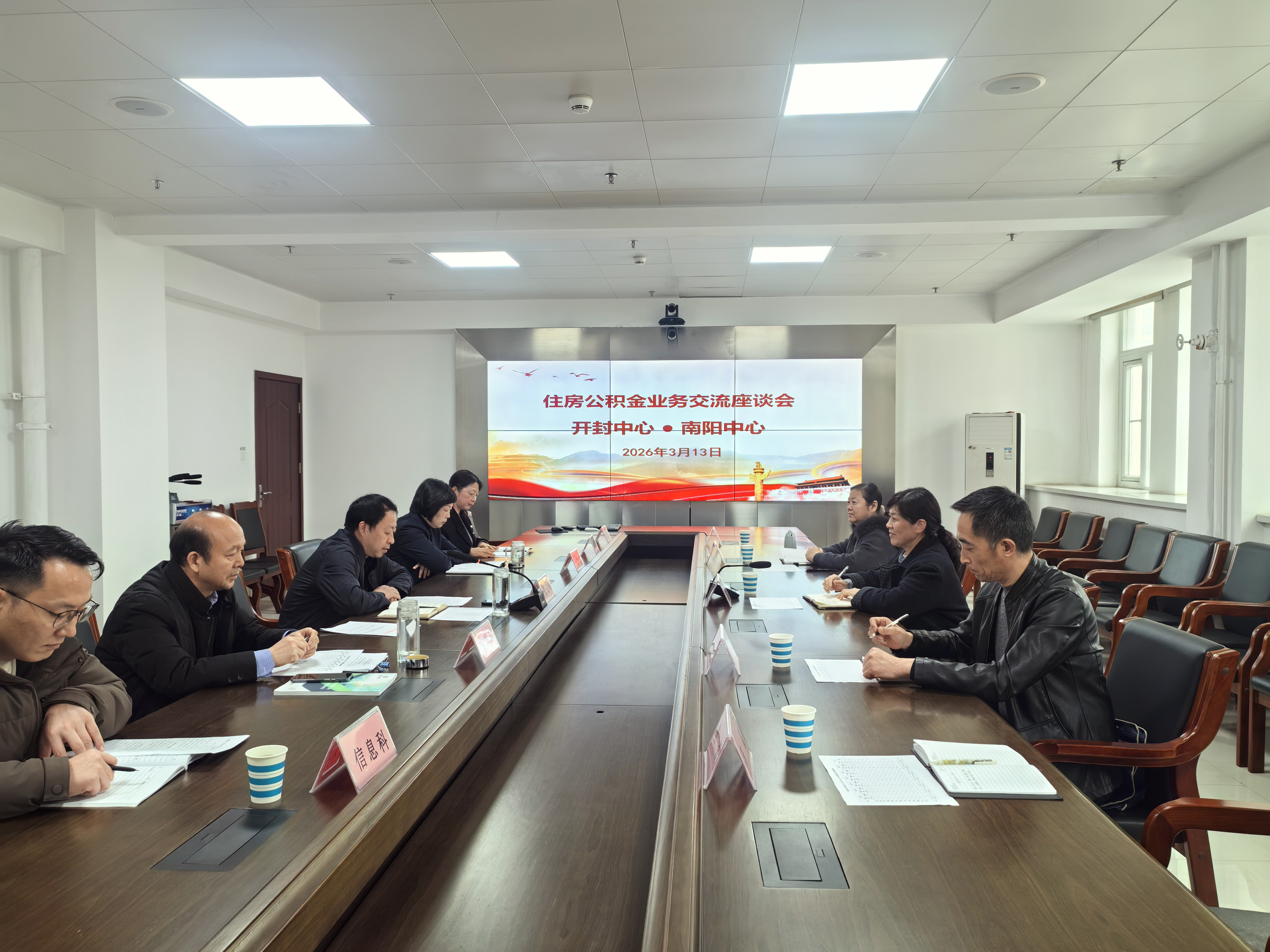南阳公积金中心主任张云峰介绍了南阳公积金中心的基本概况,并围绕相关问题业务难点疑点问题与各科负责人进行了深入交流和答疑指导。座谈会后,王晓静一行还实地走访了南阳中心业务大厅、档案室、机房等,为开封中心加强业务大厅管理、档案管理、机房管理等方面提供了宝贵的经验参考。