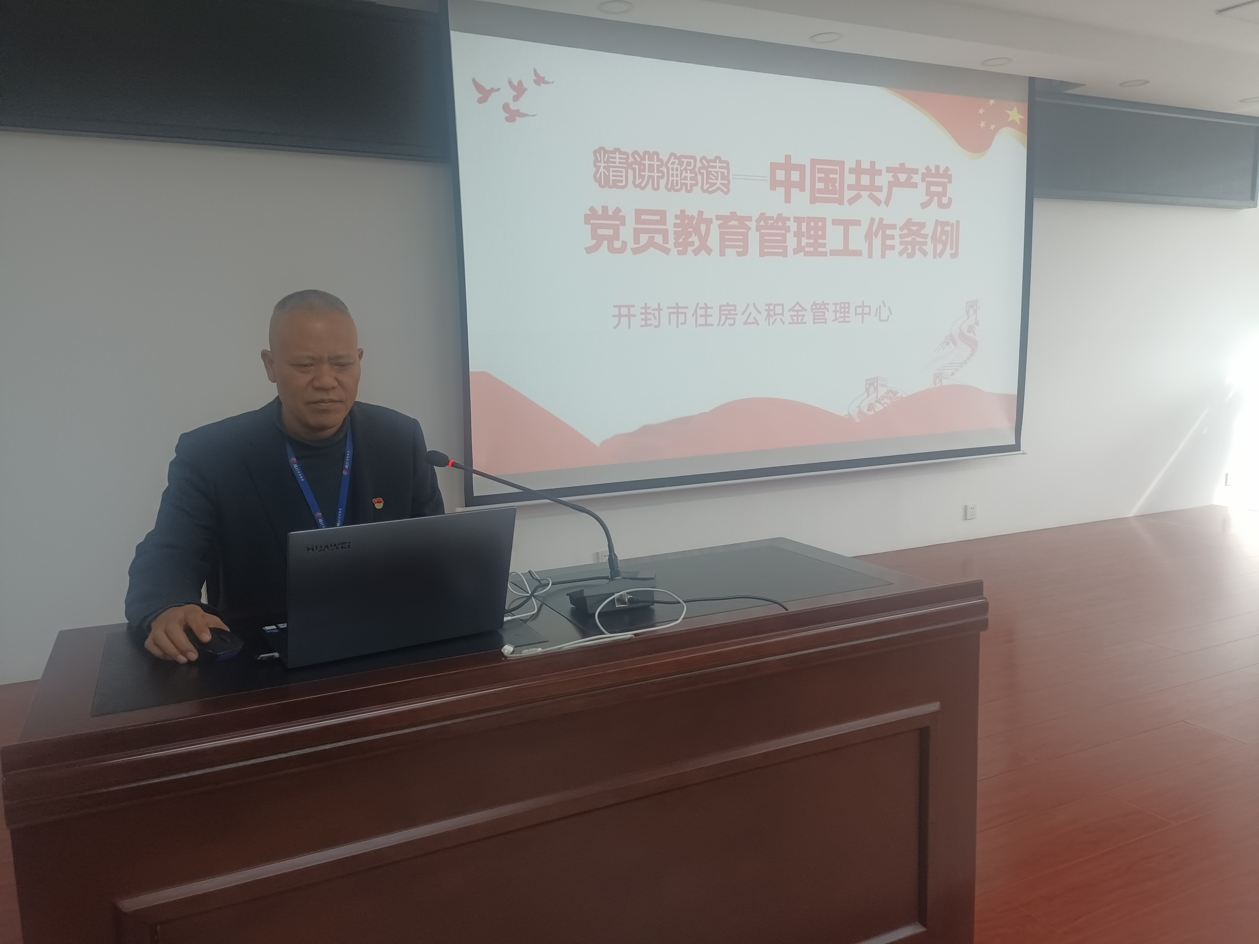 活动邀请市中心稽核科科长房华信为大家专题授课。房科长聚焦《条例》重点内容,对学习贯彻习近平新时代中国特色社会主义思想、党员教育管理基本任务、党员权利和义务、党员日常教育管理主要方式以及党籍和党组织关系管理等部分,进行了详细解读。结合公积金行业特点,房科长强调,加强党员教育管理,关键是在提高质量上下真功,突出针对性、增强实效性。要坚持“三会一课”、主题党日、集中培训等基本制度,通过树立学习公积金行业先进典型和身边榜样等直抵人心的方式,使党员教育管理有力度有温度。要依托“党员示范岗”等载体,把党性要求融入公积金服务实践,在服务群众中发挥党员先锋模范作用。同时要坚持改革创新,适应时代发展要求,用好信息网络手段,不断提高党员教育管理工作现代化水平。