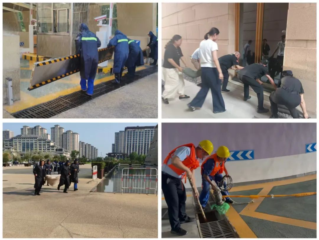 本次演练模拟了遭遇短时强降雨导致出现雨水倒灌的险情。在接收到启动应急预案并开始抢险的指令后,抢修组、通信组、后勤保障组等按照预案分工,有序开展抢险工作。抢险队员们奔赴主入口处搬运防汛沙袋堆成挡水墙或安装挡水板,阻止雨水倒灌,同时另一组队员运送水泵、水管等对已进入室内的积水进行快速抽排。暴雨过后,清扫组对地面脏污进行清洗并消杀。整个演练过程组织有序、分工明确、行动迅速,及时有效完成了险情区域的封堵、排水等关键任务,达到了预期效果。