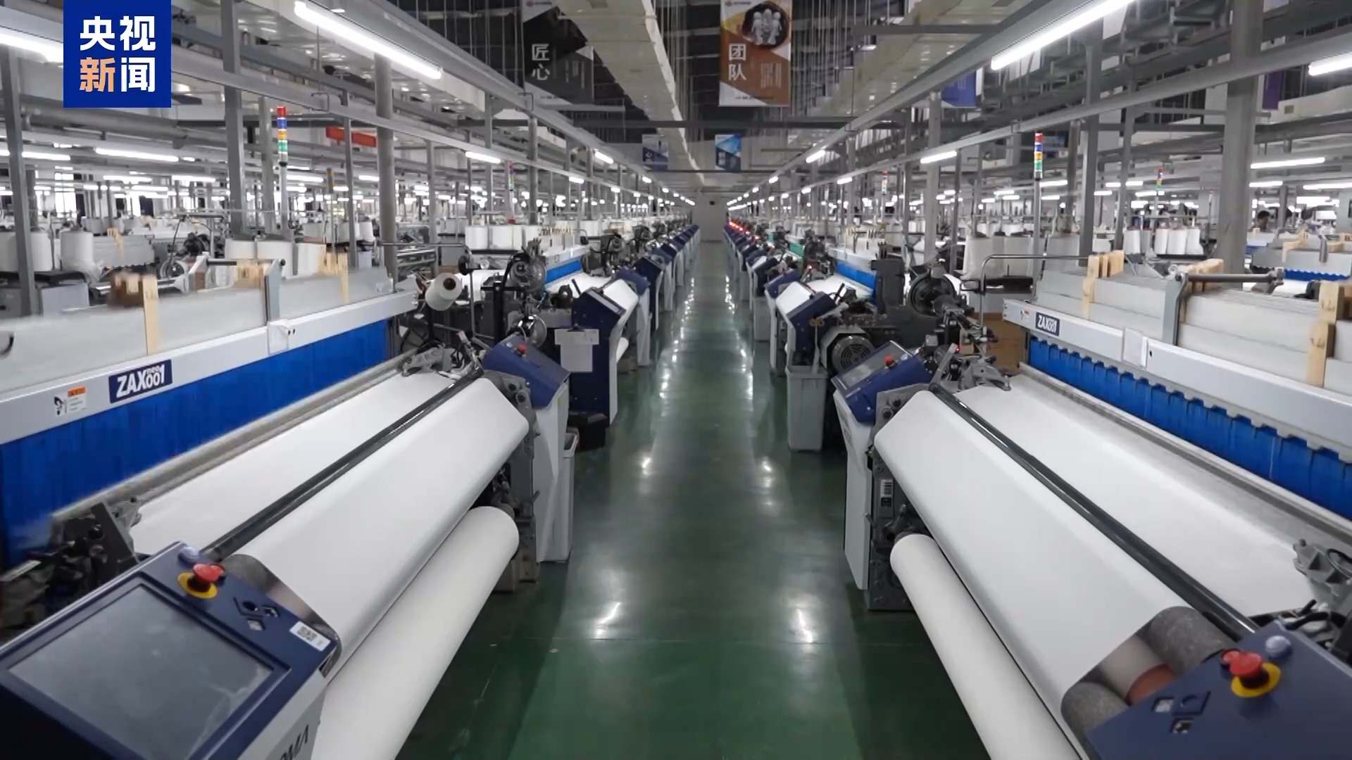 在一家纺织面料加工工厂里,一排排防晒专用纱线正源源不断地被送上织布机,经过密织、高温定型等流程,被加工成具备高倍防晒性能的科技面料。据企业负责人介绍,他们从2019年开始,对全产线进行了数字智能化升级。