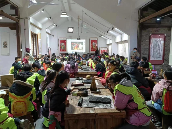 打造了“理论+实践”的沉浸式研学课程体系,针对不同群体设计差异化内容:面向中小学生开设“年画起源探秘、刻板体验、拓印实践”等基础课程;为专业学习者设置古版修复、题材创新等进阶课程;游客可在创作工坊体验年画制作全流程。这种体验式传承既擦亮了朱仙镇文化名片,更厚植了乡村文化自信。