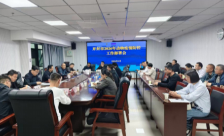 2026年4月3日,开封市农业农村局召开2026年全市动物疫情防控工作部署会。市农业农村局主要领导、兽医与屠宰管理科、市动物疫病预防控制中心、市动物卫生监督所负责人,各县(区)农业农村局局长、分管防疫副局长、疫控中心主任参加会议。