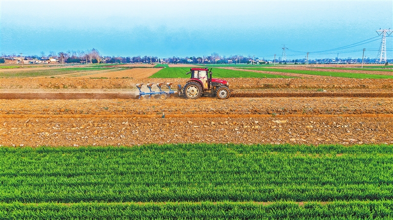 3月10日,新野县沙堰镇翟庄村村民驾驶旋耕机在田间作业,为选育葱苗做好准备。 王小军 摄