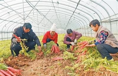 在河南汝阳县柏树镇,返乡创业的“田秀才”成立专业合作社,种植水果萝卜获得丰收。