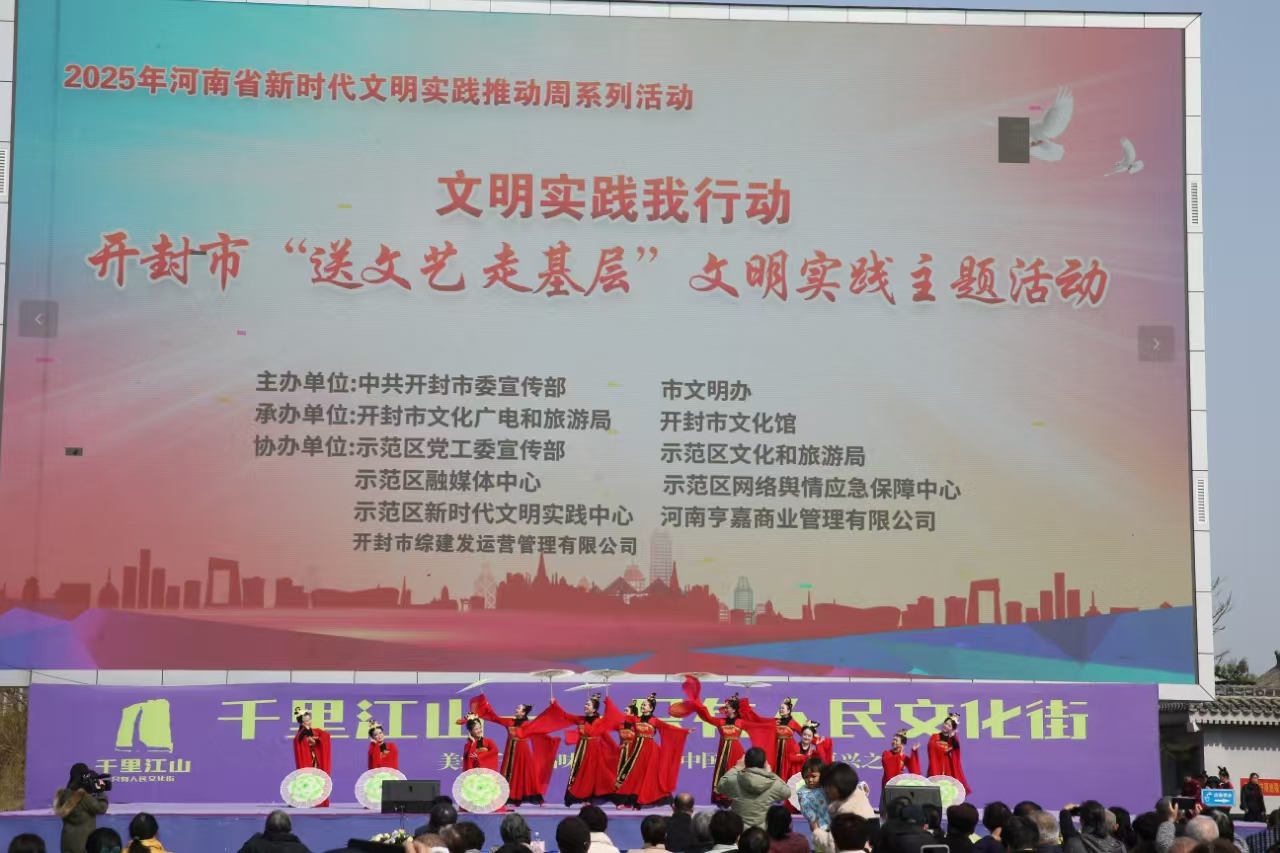 为推动优质文化资源直达基层,3月5日和6日上午,由市文化广电和旅游局开展的“送文艺走基层”文明实践主题活动在市民广场和振河商业广场精彩上演,为市民们带来了一场视听盛宴。开场舞《春风得意开盛世》、歌曲《志愿中国》、情景说唱《我在开封很想你》等既有开封特色又能展现文艺志愿者良好精神风貌的节目轮番上演,赢得了现场观众的阵阵掌声。