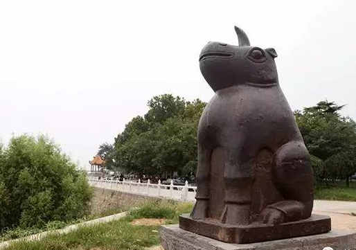在波涛汹涌的黄河面前,人力的确太过无能,于是百姓只有集资修建“禹王庙”“龙王庙”“水德祠”,想方设法安抚“水神”,以求神的护佑。明代朱元璋开国后,曾立开封为北京,重整破损不堪的城池,以砖砌城墙,整个开封城呈卧牛之状:大梁门恰如牛头,其他4门为牛蹄。牛为耕地之大畜,离不开土地,属性为土。开封地处黄河边,常遭水淹,卧牛城无疑表述了建城者用土克水、 用卧牛战胜黄河水患的意愿。可是,虽然开封城具有“克水”的功能,“龙王庙”里的香火一直在氤氲缭绕、不绝如缕,汹涌激荡、桀骜不驯的黄河水照样还是隔三岔五“溜”到堤外祸害百姓。神力不到,无计可施,面对黄河这条“怪兽”,难道真的没有办法了吗?于是,就有了镇河铁犀,我们今天仍能看到的那尊镇河的铁铸“怪兽”。