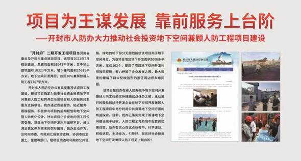 主持人:李主任,请首先和广大网友谈一谈:开封市人防办是如何加快项目建设,推动经济高质量发展的?