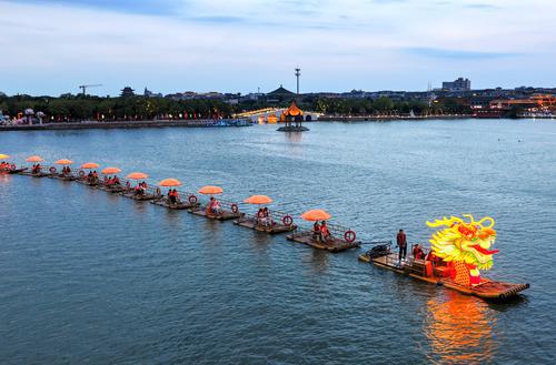为满足市民游客夜间出游需求,避开白天的高温烈阳,清凉的“夏日夜游”成了文旅市场新宠。龙亭湖上游船往来,网红龙舟燃爆各大网络平台。(全媒体记者 袁洋 文/图)