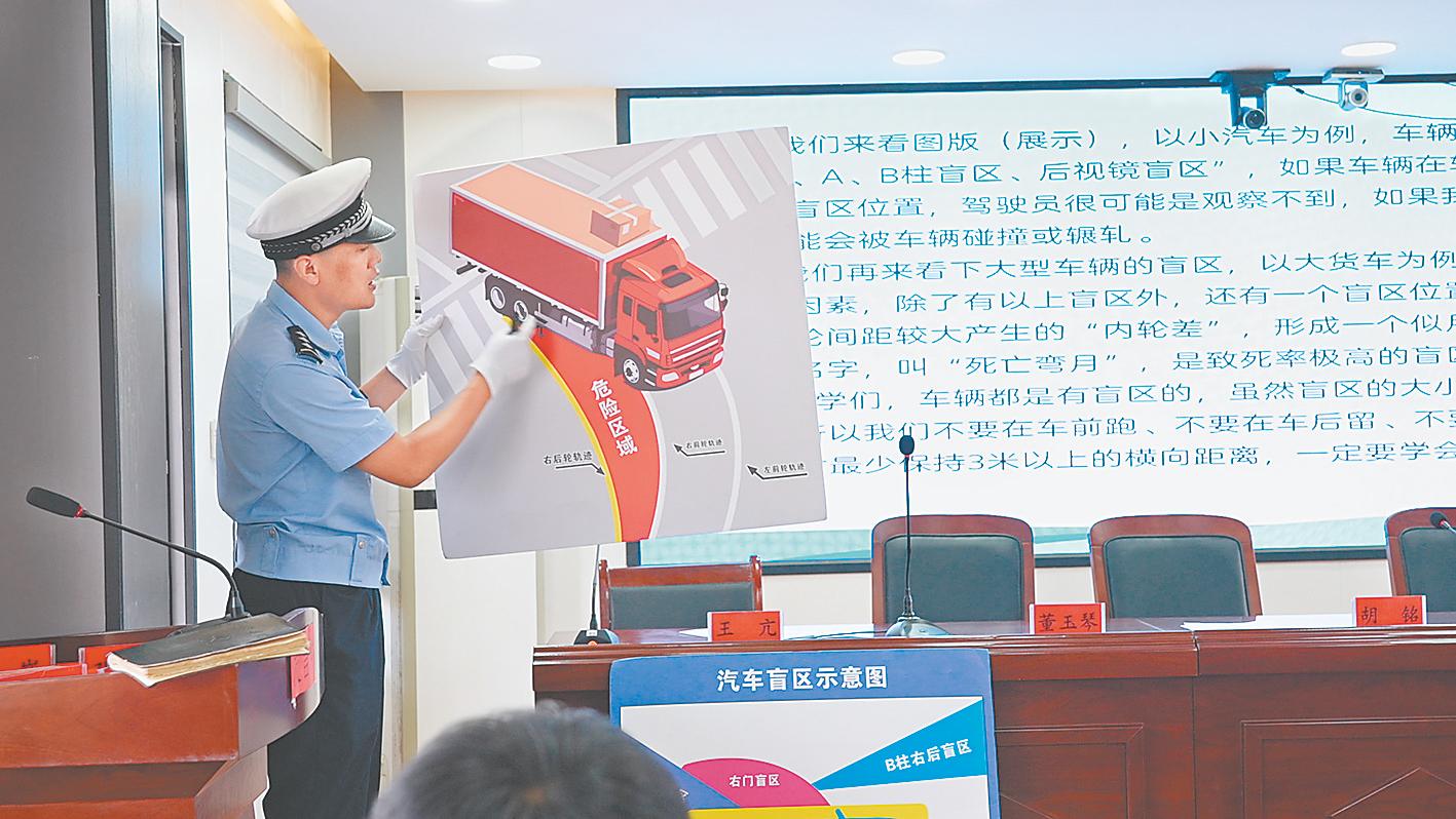 为增强留守儿童交通安全意识,筑牢暑期学生交通安全防线,7月30日上午,通许县交警大队借助通许县妇联组织的“爱心妈妈儿童关爱服务活动”,为孩子和家长们送上了一堂生动的交通安全宣传教育课(见上图,全媒体记者沈泓琳摄)。