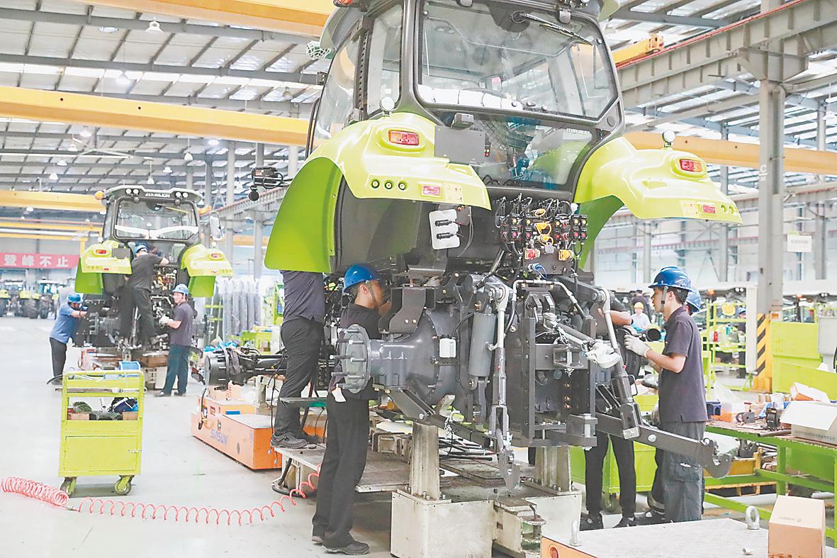 中联重科生产车间里一派繁忙景象。