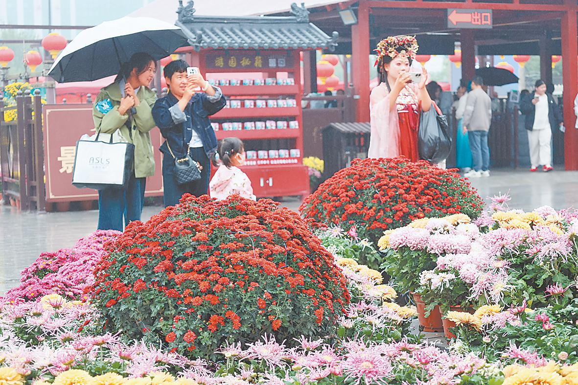 (菊花绽放,喜迎八方宾朋。 全媒体记者石斐10月8日摄)
