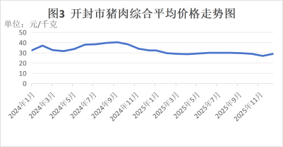 (一)猪肉价格同比下降17.6%。2025年全年猪肉均价为29.4元/千克,同比下降17.6%。其主要原因:一方面,生猪出栏量持续高位,猪肉实际供应量超出市场预期;另一方面,需求疲软,是造成2025年猪肉价格下跌的另一因素。传统消费旺季提振效应明显减弱,猪肉消费占比有所下滑,禽肉、牛羊肉分流猪肉需求。