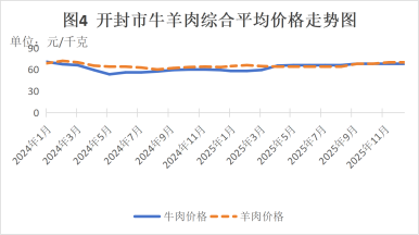 (二)牛羊肉价格分别上涨7.1%、1.5%。2025年牛羊肉全年均价分别为64.7元/千克、65.9元/千克,同比分别上涨7.1%、1.5%。2025年以来,牛肉价格先涨后稳,羊肉价格整体小幅波动。牛羊肉价格影响因素有以下几个方面:一是供应方面。牛肉养殖规模减少,导致供给有所减少,羊肉养殖相对稳定,但牛羊出栏存在季节性特点,供应量相对稳定。二是需求方面。烧烤、火锅等餐饮消费拉动牛羊肉需求,支撑价格稳定。另外,猪肉价格下跌,对牛羊肉消费有一定替代作用,但牛羊肉因口感、营养等特点,仍保持一定市场份额。三是成本方面。饲料价格上涨,推高牛羊养殖成本,对价格形成支撑。