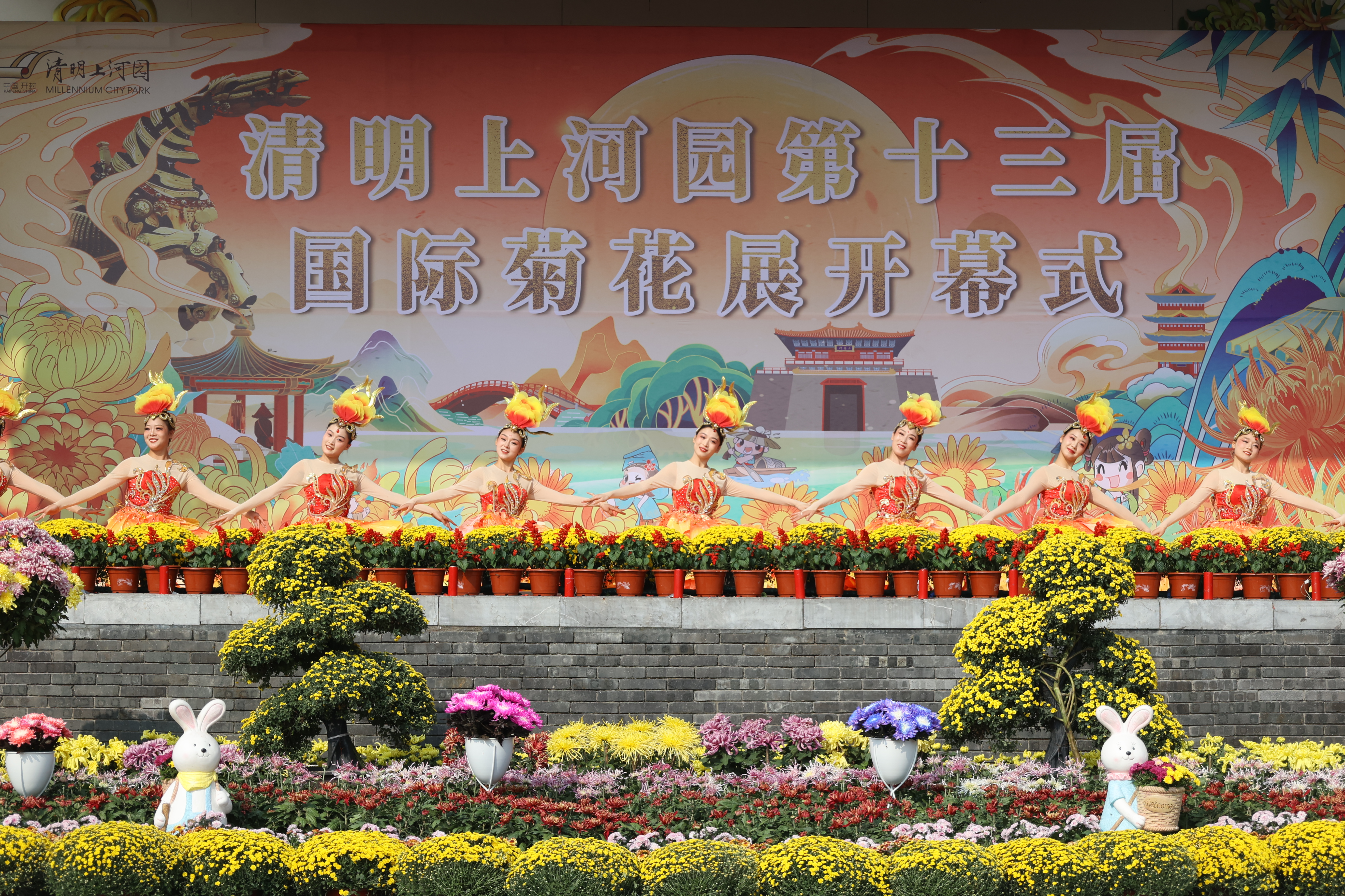 10月15日,清明上河园第十三届国际菊花展开幕式顺利举行。(全媒体记者 石斐 摄)