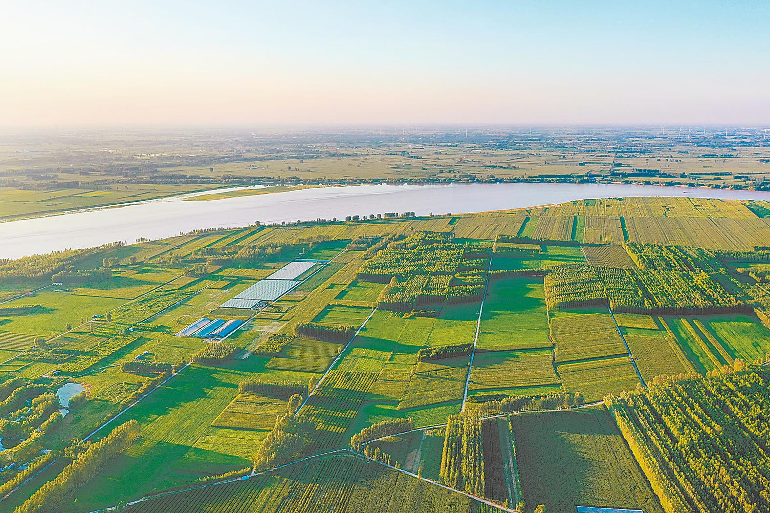 8月12日,在晚霞映衬下,黄河岸边如诗如画,景色更加优美迷人。(记者 石斐 摄)