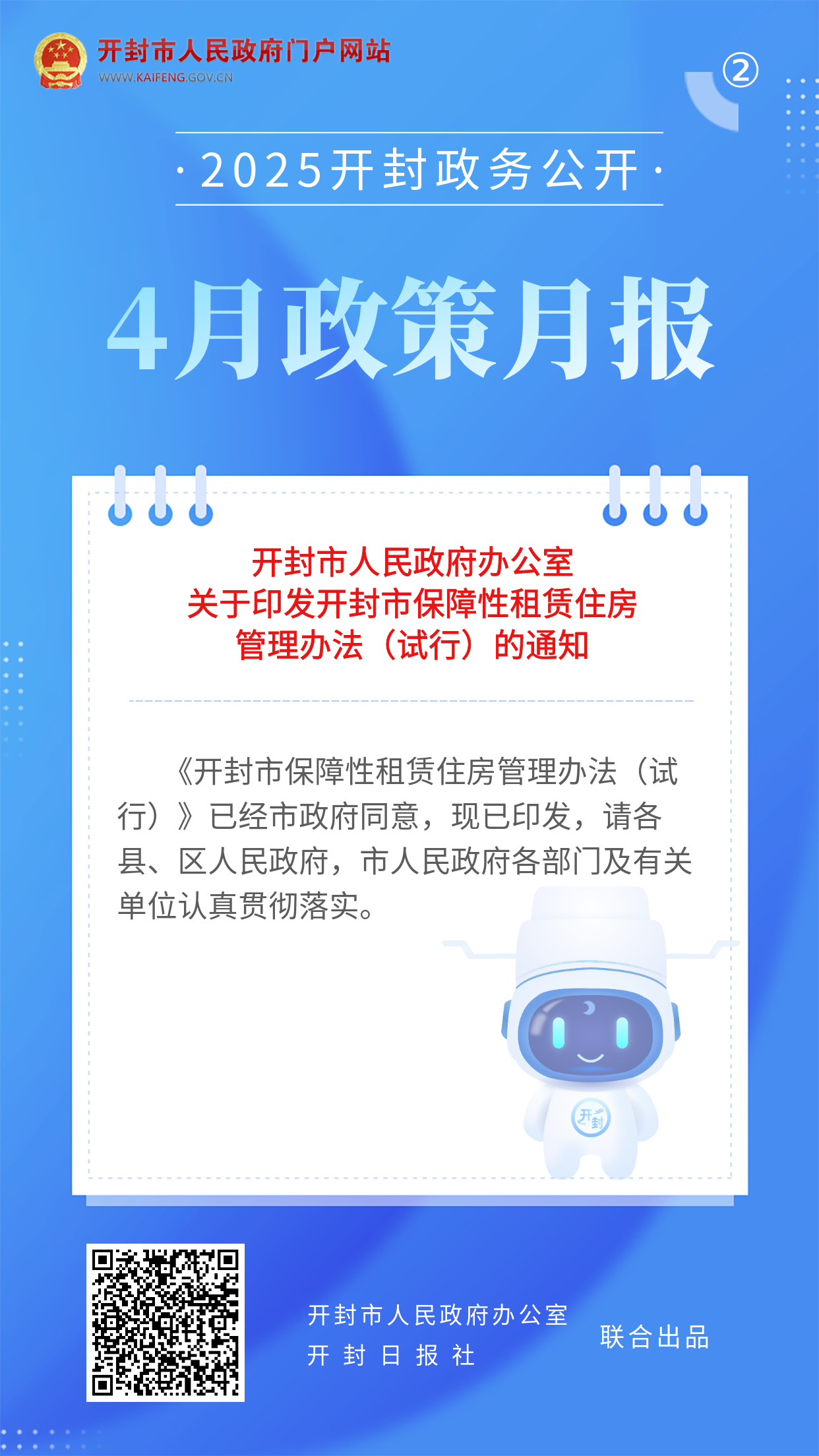 2025年4月,开封市人民政府办公室发布了关于印发开封市配售型保障性住房管理办法(试行)的通知、关于印发开封市保障性租赁住房管理办法(试行)的通知等,一起来看详情——