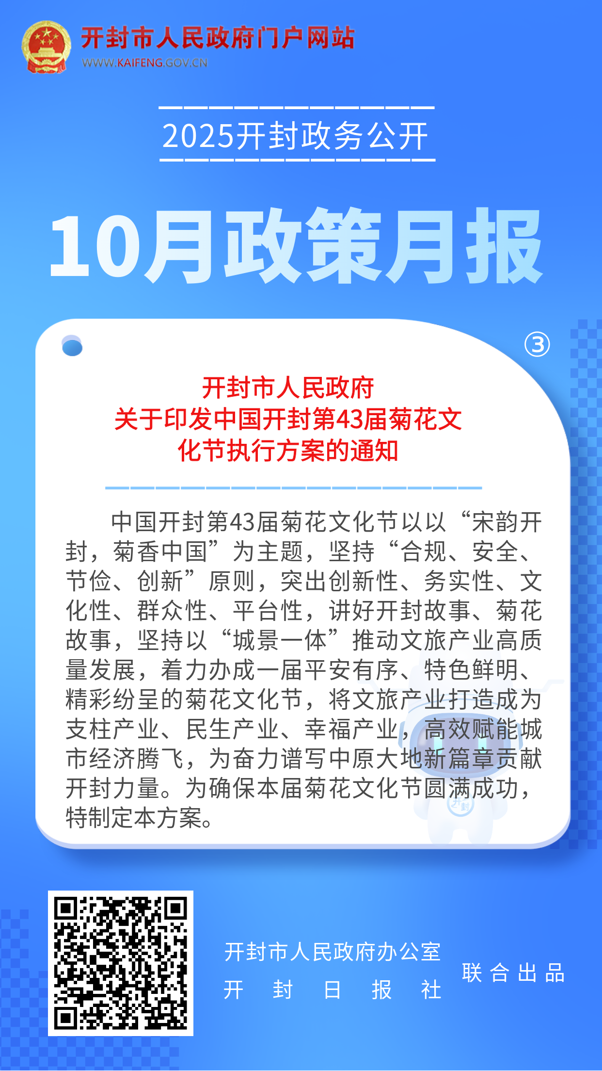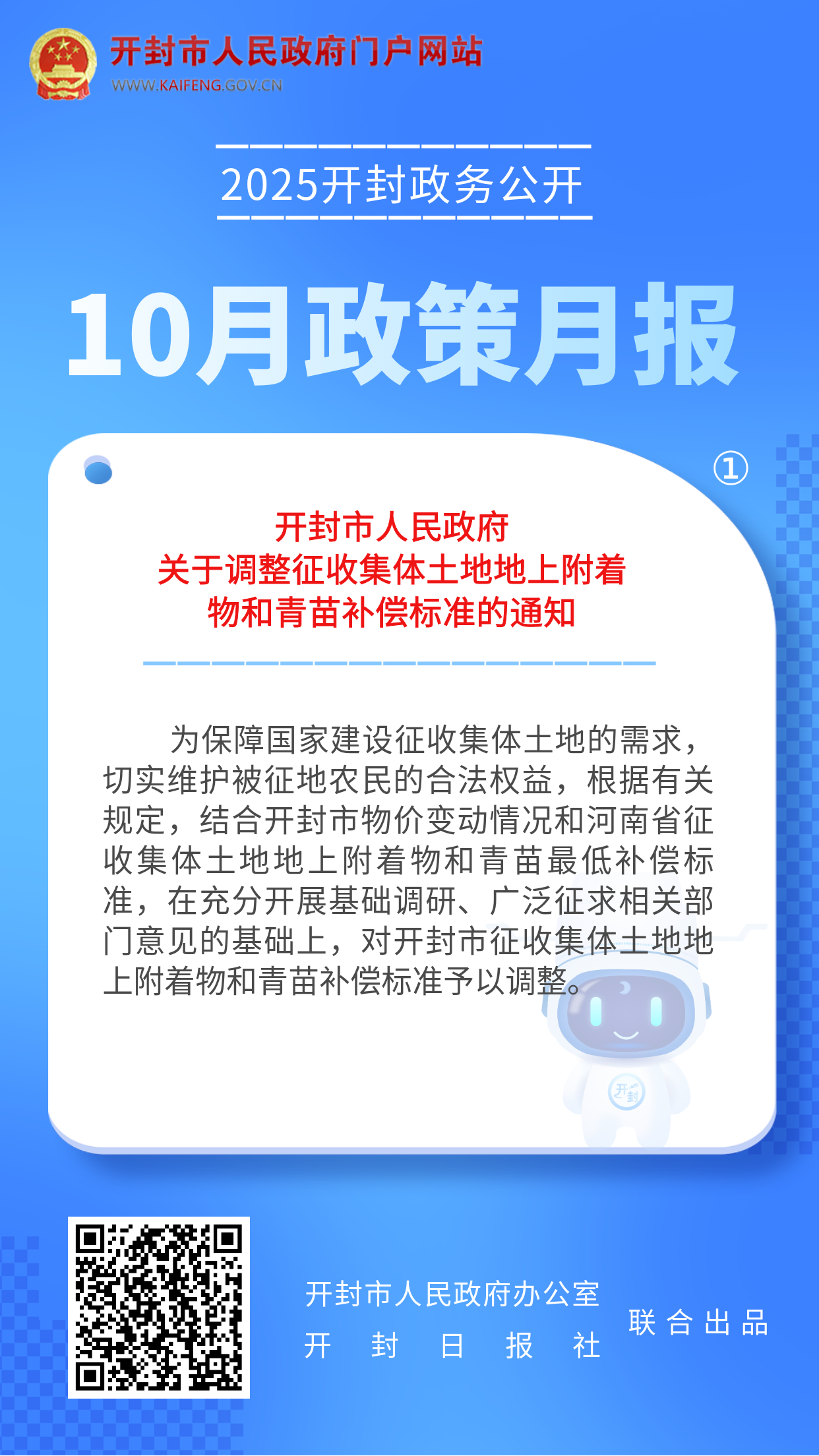 2025年10月,开封市人民政府发布了关于调整征收集体土地地上附着物和青苗补偿标准的通知、关于公布市政府行政规范性文件清理结果的决定、关于印发中国开封第43届菊花文化节执行方案的通知等,一起来看详情: