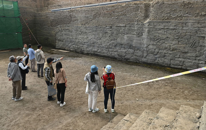 与会专家学者在开封州桥遗址进行学术考察(2023年5月13日摄)。新华社记者 李贺 摄