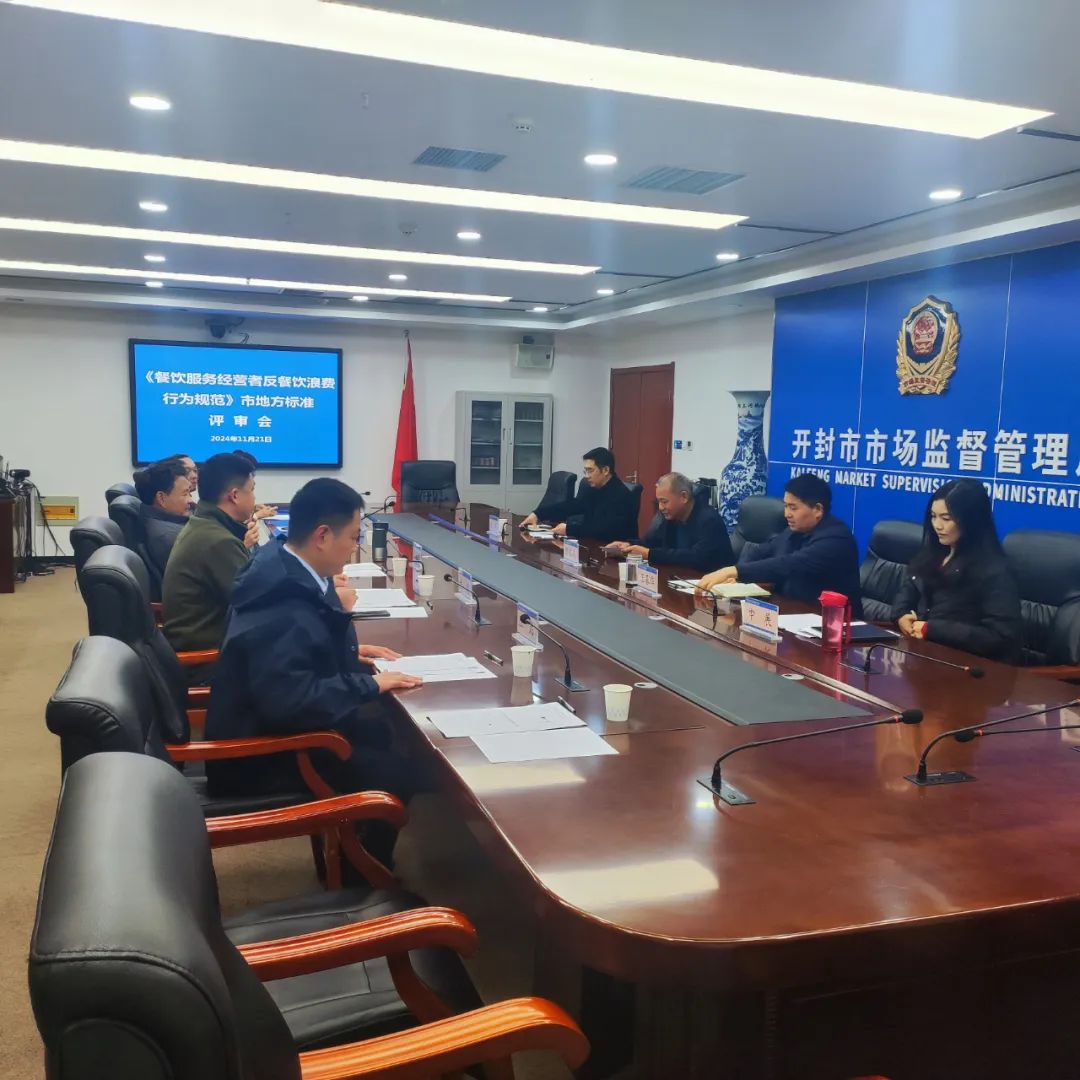11月21日,开封市市场监管局组织召开《餐饮服务经营者反餐饮浪费行为规范》市地方标准评审会,会议邀请开封市豫菜文化研究会、开封市梅利餐饮有限公司、开封第一楼有限责任公司等单位7名专家组成评审组。市局党组成员、副局长郭振启出席会议并讲话。标准化科科长王春华主持会议并介绍了标准起草的背景和依据。