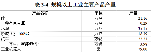 2023年,全市规模以上工业主要产品产量(详见表3-4)。