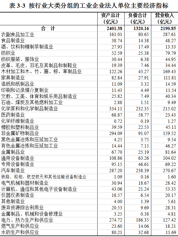 2023年末,全市工业企业法人单位资产总计2401.38亿元;负债合计1320.16亿元。