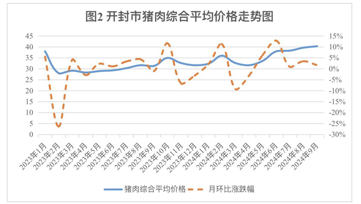 (一)猪肉价格先降后升,季节性波动。1-2月份,受春节影响,猪肉价格上涨,节后猪肉需求减弱,价格有所回落。4-6月份受“五一”“端午”节日效应影响,猪肉价格小幅回升。7-9月份由于夏季天气炎热,猪肉消费处于淡季,价格平稳运行。前三季度,五花肉、排骨平均价格分别为32元/千克、39.7元/千克,同比分别上涨20.8%、14.5%。
