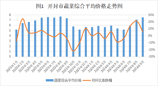 2024年以来,开封市蔬菜供应充足,价格保持在合理区间运行。1-2月份,受季节因素及节日效应拉动等影响,蔬菜价格持续上涨。3月份起,蔬菜价格进入季节性下行通道。随着天气逐步转暖,蔬菜市场供应量及品种明显增加,本地菜逐渐取代外地菜,且蔬菜运输及保鲜费用下降,监测的13种蔬菜价格普遍回落。8-9月份蔬菜价格受天气及季节性需求影响明显上涨。前三季度蔬菜价格与上年同期相比有所下降,全市蔬菜综合平均价格为6元/千克,同比下降13.0%。