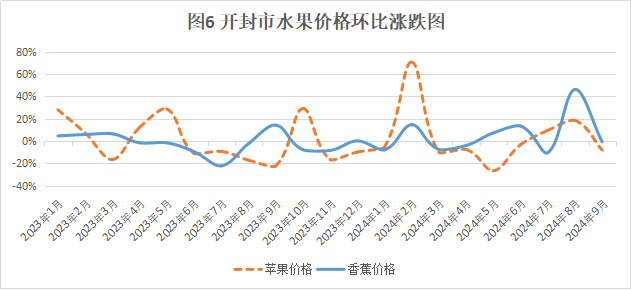 前三季度,在市场供需、节日效应及天气影响等共同作用下,开封市主要食品价格涨跌互现、合理运行。与2023年同期相比,前三季度全市主要食品市场各类产品的平均价格呈现“10升20降5平”的情况,其中蔬菜、牛羊肉、鸡蛋及水果价格不同程度下降,而猪肉、白条鸡的价格则有不同幅度的上升。