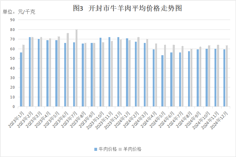 2024年,开封市统计局经调队对开封市主要食品价格进行监测,监测结果显示,开封市主要食品价格涨跌交织。表现为,粮油价格平稳,各品种波动区间狭窄,蔬菜类价格季度起伏各异,猪肉价格有所上涨,牛羊肉价格持续下滑,蛋类价格涨跌交替,水产品类价格小幅波动,水果类价格则依循季节更迭波动。